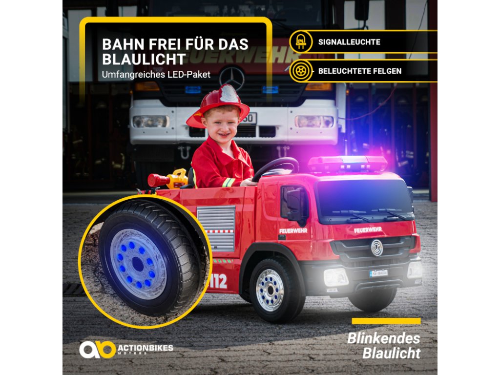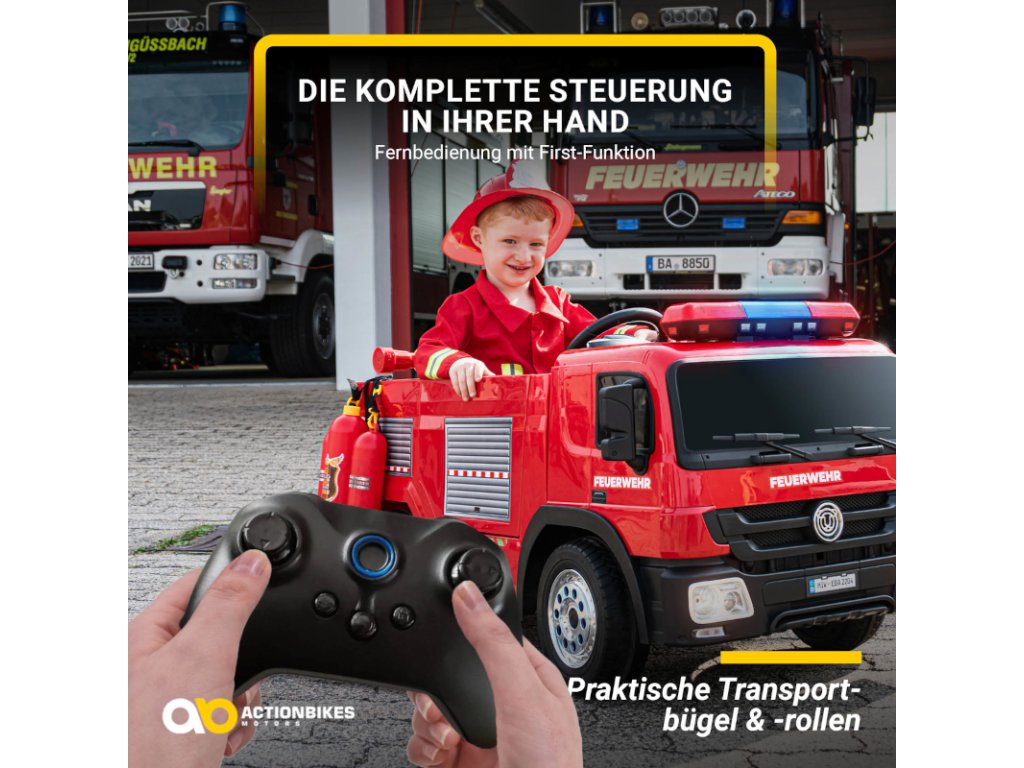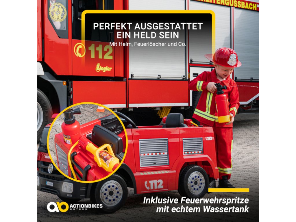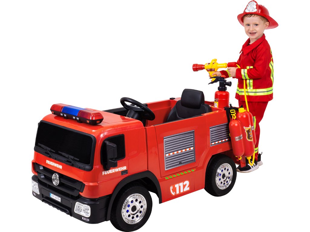Vďaka širokej škále vybavenia si deti vo veku od 3 do 7 rokov precvičia aj zručnosti ako koordináciu, jemnú motoriku a postreh. Kreativite sa medze nekladú: Pomôcky ako hasičské auto, prilba, hasiaci prístroj, modré svetlo a siréna sú pripravené na ďalšiu úlohu. Nechýba ani nevyhnutná časť bezpečnosti vždy so sebou vo vašej batožine. Pretože funkcie ako automatická brzda, mäkký štart alebo diaľkové ovládanie sprevádzajú malých hasičov na každej ceste. Silný výkon motora až 70 wattov a výkonná 12 V batéria robia z tohto detského elektrického autíčka 1A parťáka na hranie!