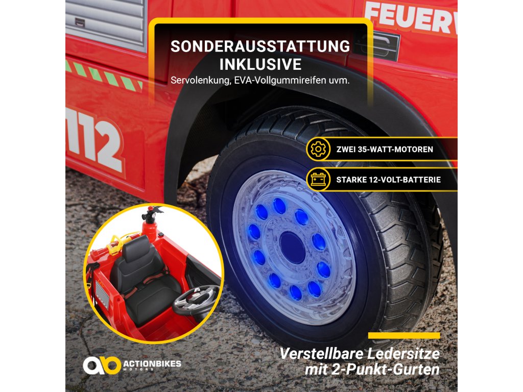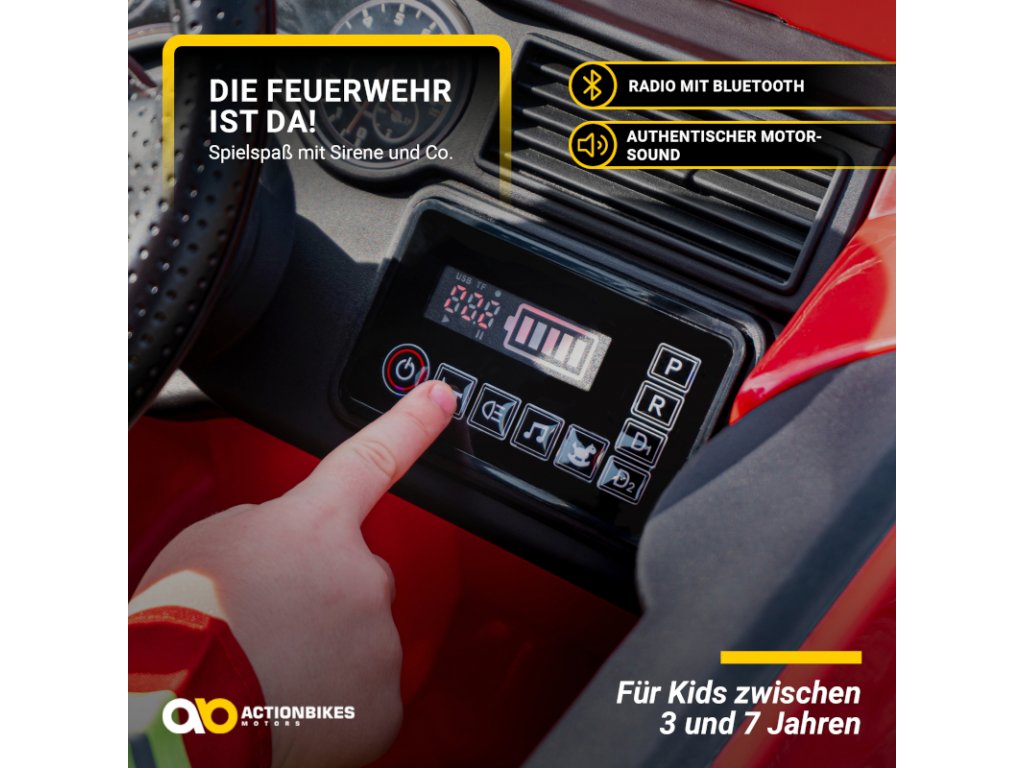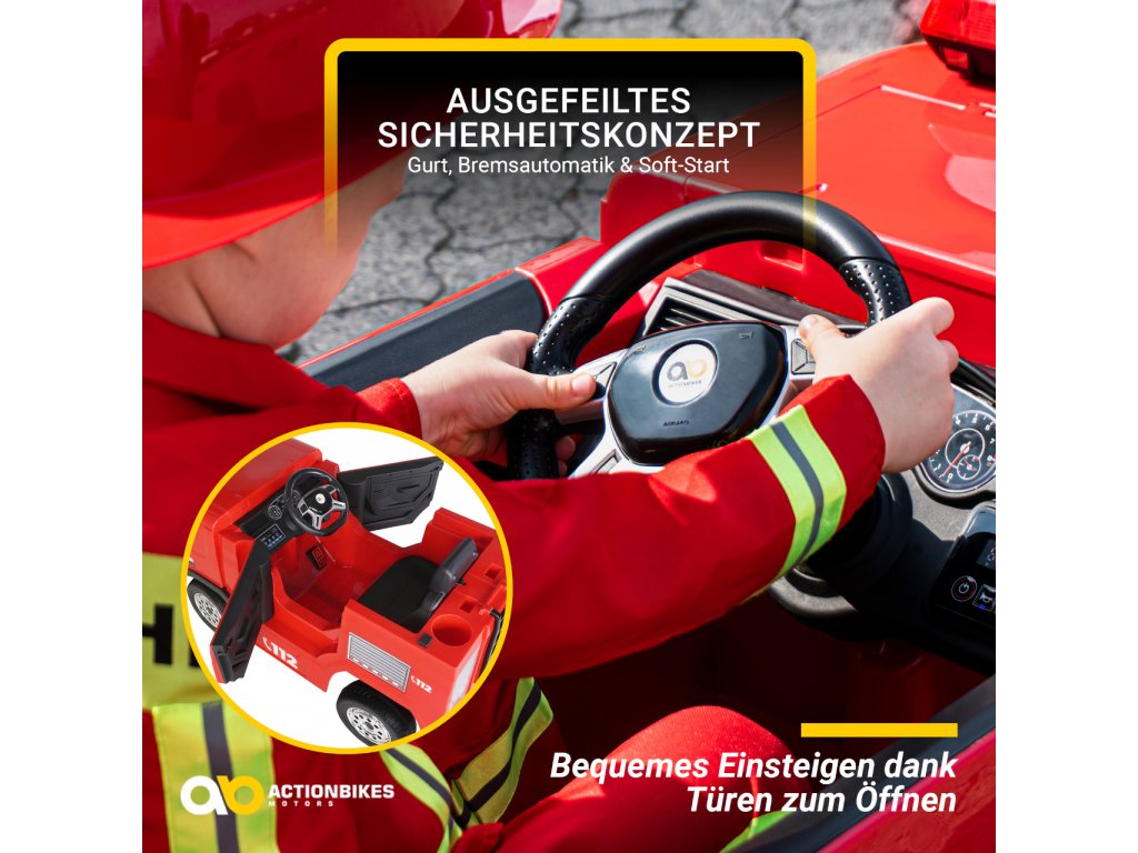 Detské elektrické autíčko od Actionbikes je vybavené funkciami ako automatické brzdenie a mäkký štart . Jednoducho zložte nohu z pedálu a detské elektrické autíčko sa rýchlo zastaví. Bezpečkostné pásy držia malého hasiča v sedadle.