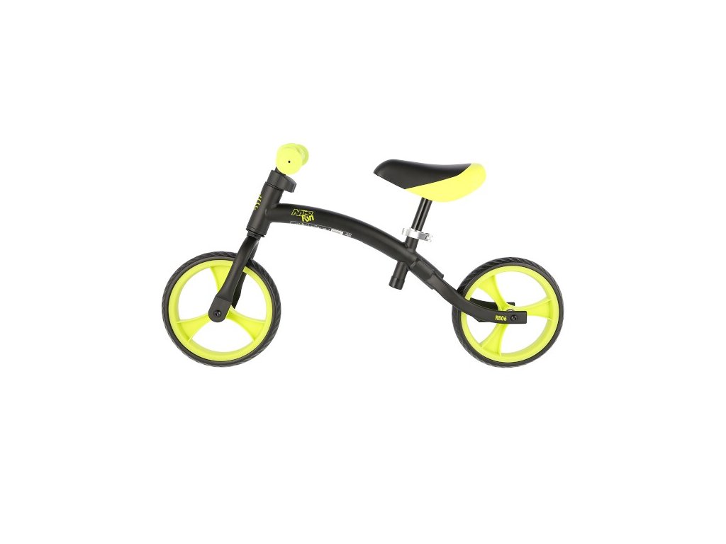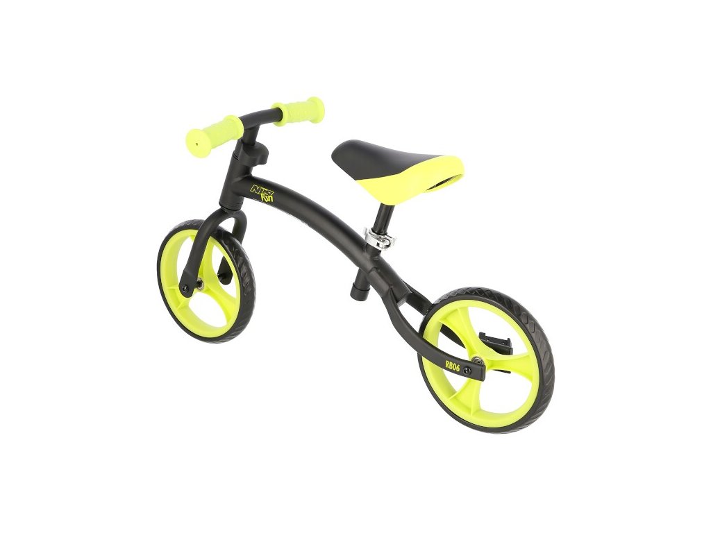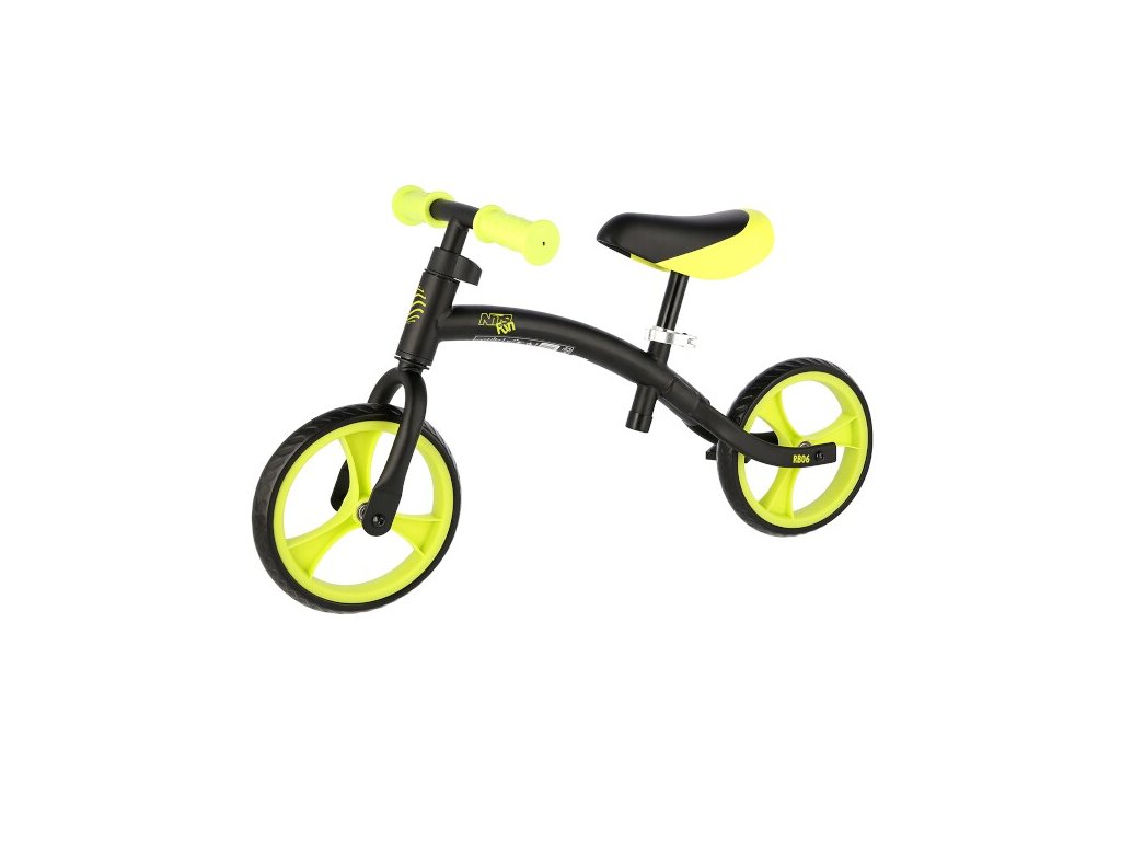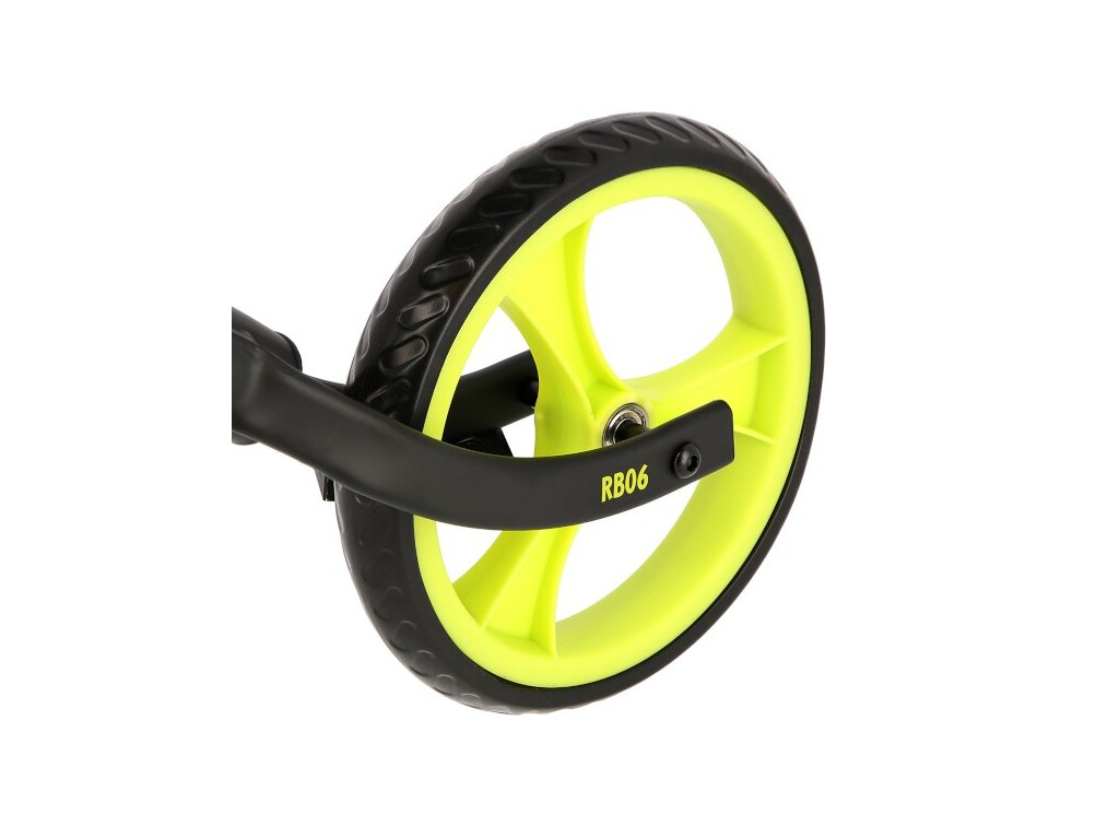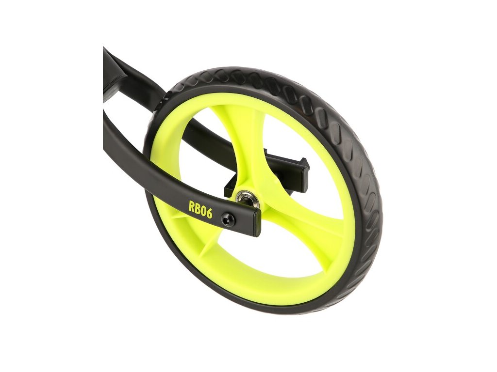 Konštrukcia RB06 je vyrobená o kvalitné, lakované ocele. Pre maximálne bezpečie sú všetky hrany zaoblené. Rukoväte sú osadené gripy s golierom na oboch stranách, ktorý zamedzuje sklznutie dlane. Stredové zloženie je vybavené zarážkou, ktorá zamedzuje pretočeniu riadidiel. Plastové kolesá sú osadené 9 ", plnú pneumatikou, ktorá nejde preraziť. Ložiská ABEC 9 zaručujú plynulú jazdu. Riadidlá a sedlo sú výškovo nastaviteľné.