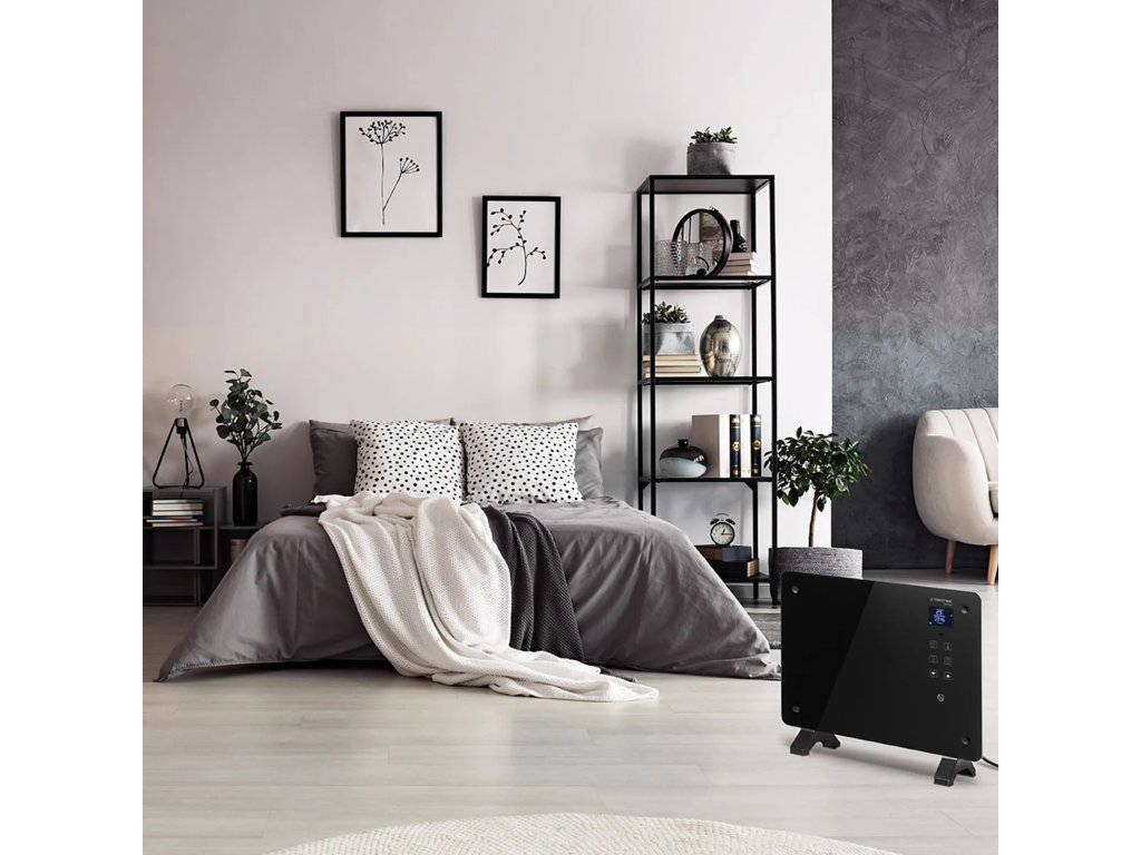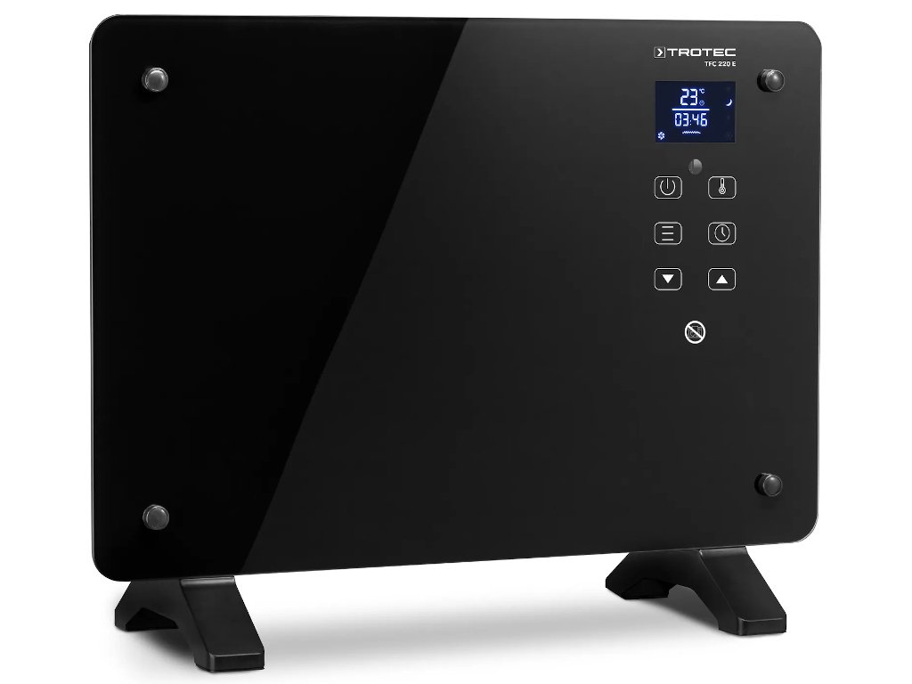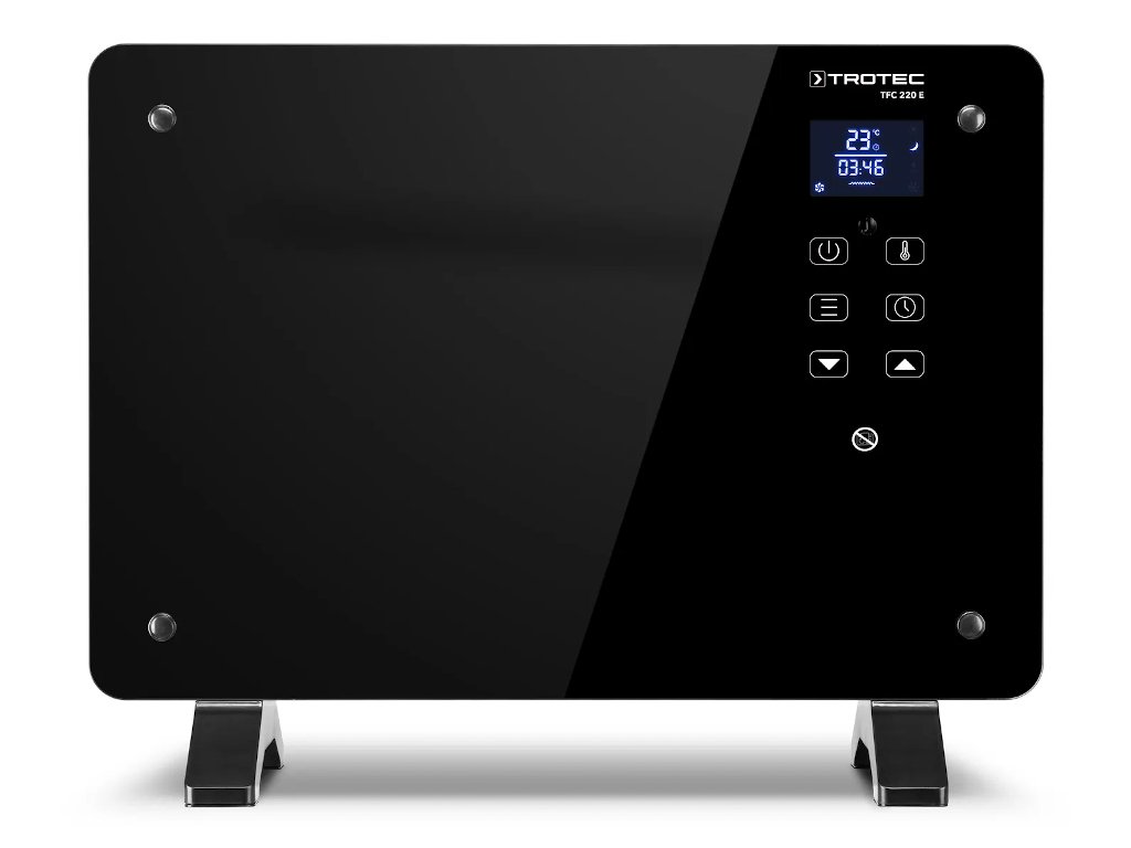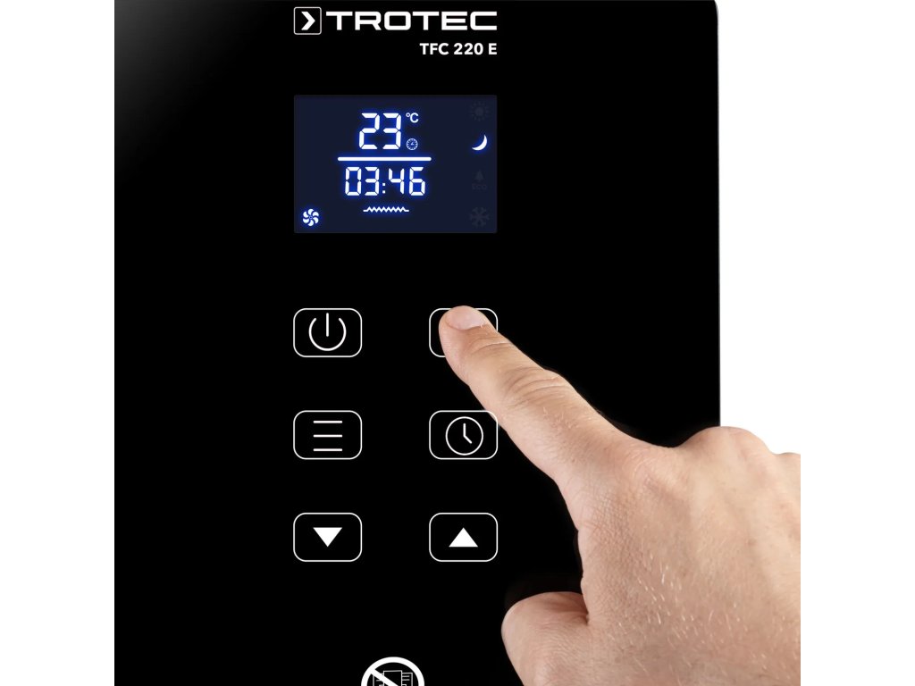 Požadovanú teplotu v miestnosti je možné nastaviť pomocou moderného dotykového panela alebo dodávaného infračerveného diaľkového ovládača. Zabudovaný termostat TFC 220 E potom reguluje teplotu v miestnosti a spotrebu energie úplne automaticky! Po dosiahnutí prednastavenej teploty sa vykurovacia funkcia ohrievača sama vypne, až kým nebude potrebné opätovne zohriať.