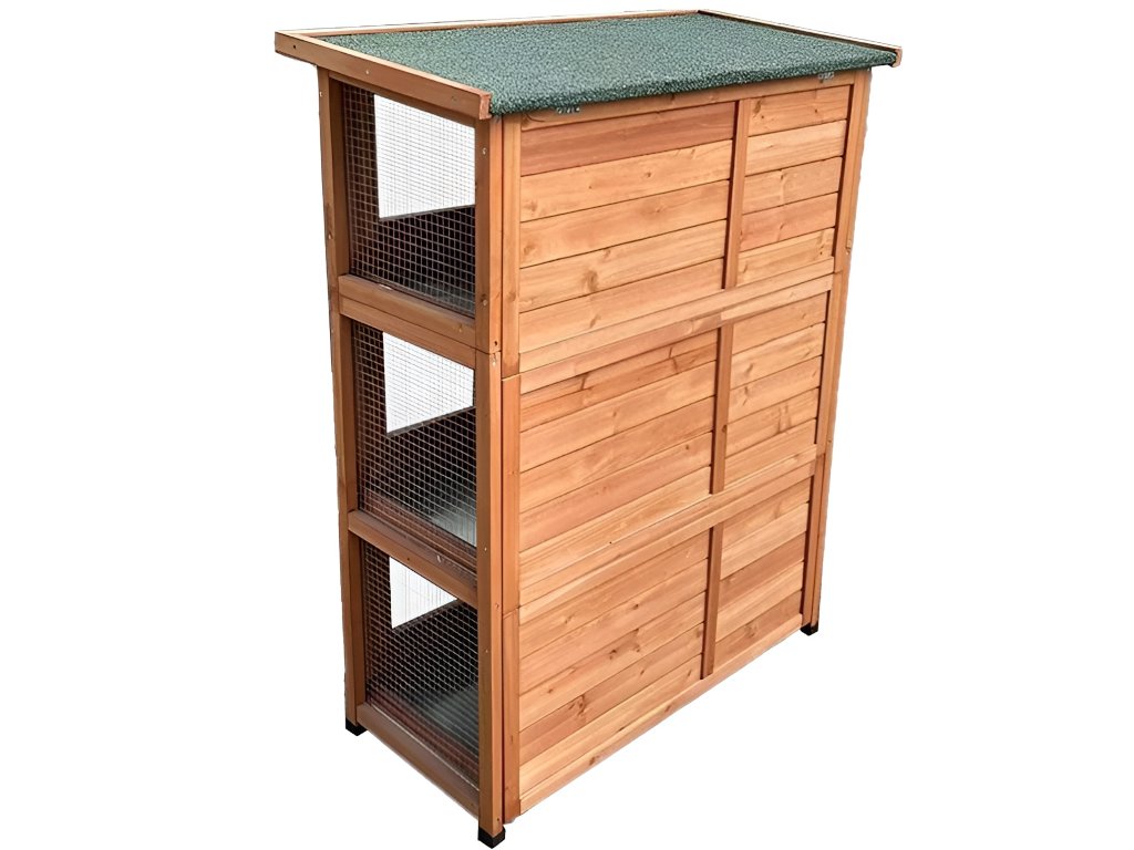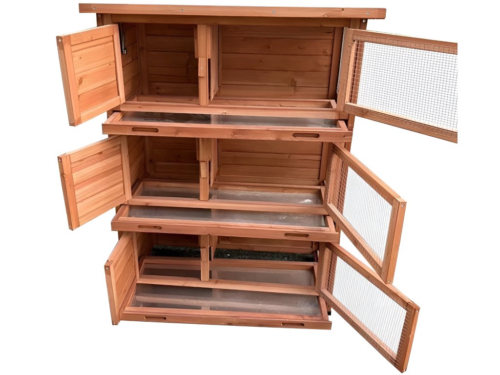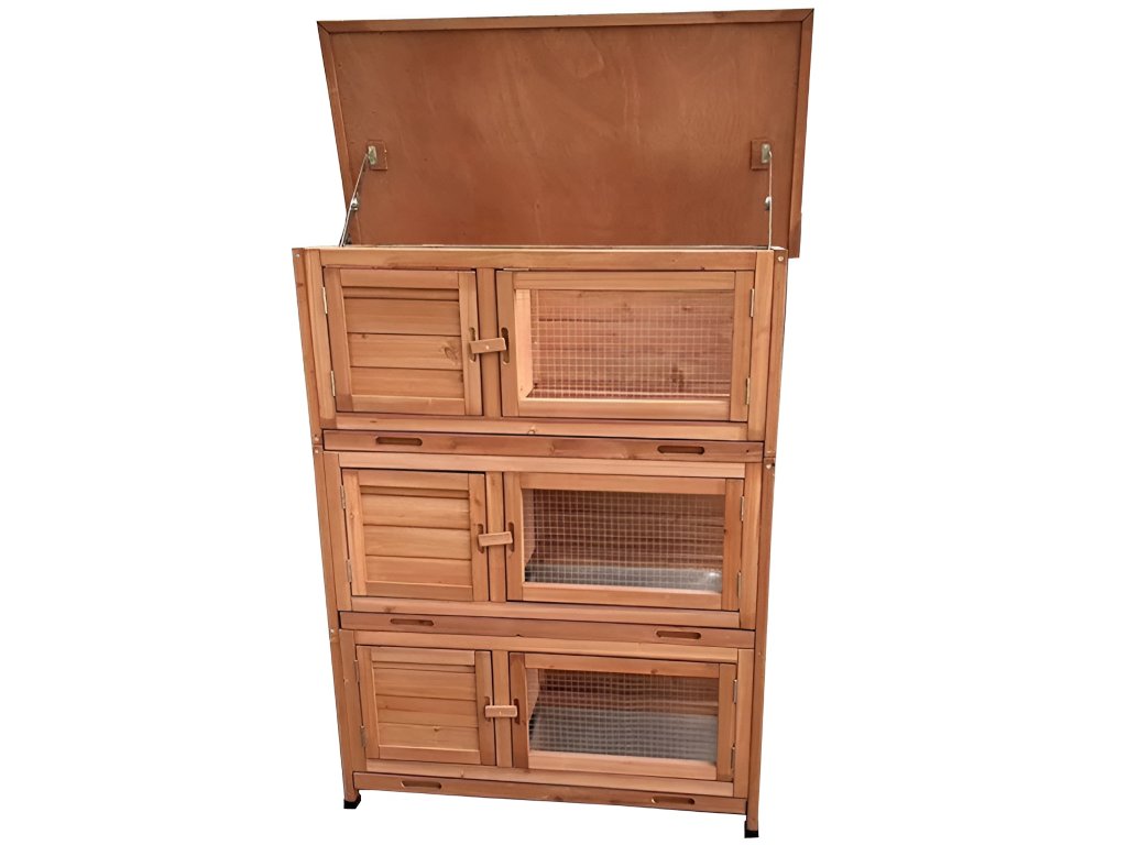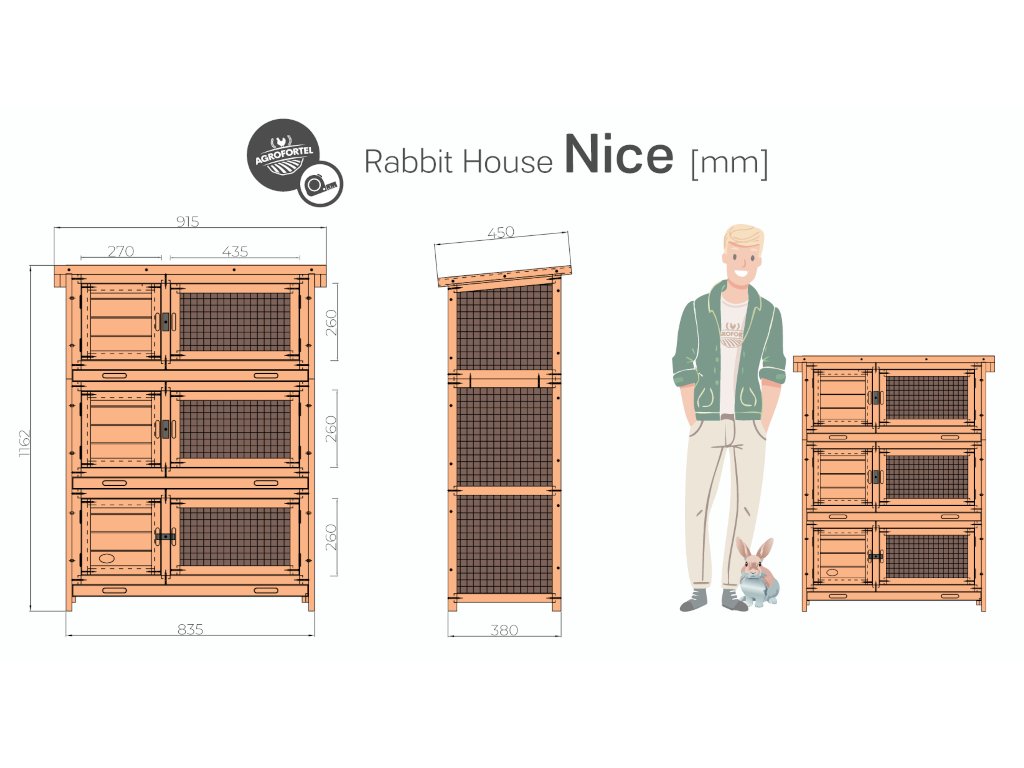 Je ideálny pre tri štandardné králiky a vyniká skvelým pomerom ceny a kvality. Králikáreň je vybavená troma kotercami . Strecha je potiahnutá asfaltovým pásom proti poveternostným vplyvom. Králikáreň je vyrobená zo smrekového dreva.