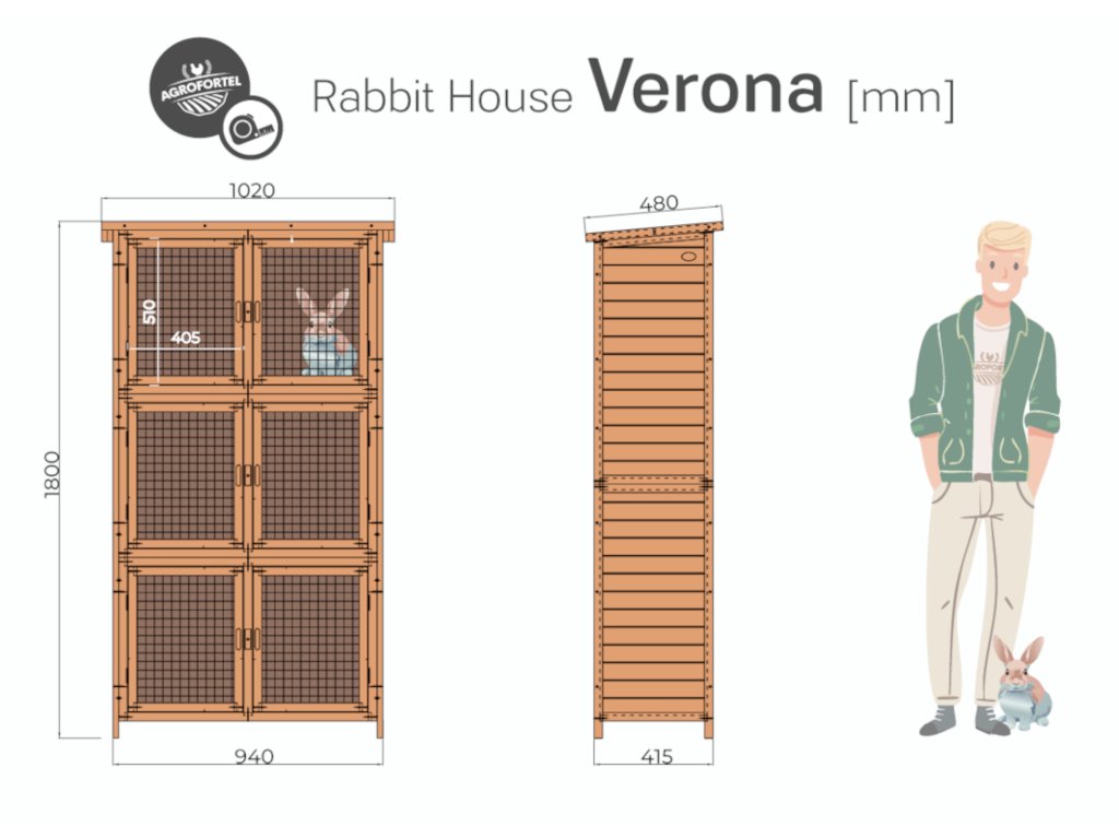 Drevená králikáreň Agrofortel VERONA pre 6 králikov, 102 x 48 x 180 cm