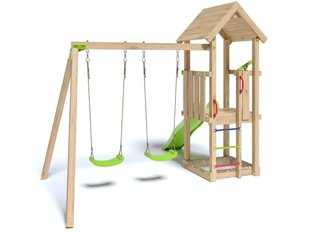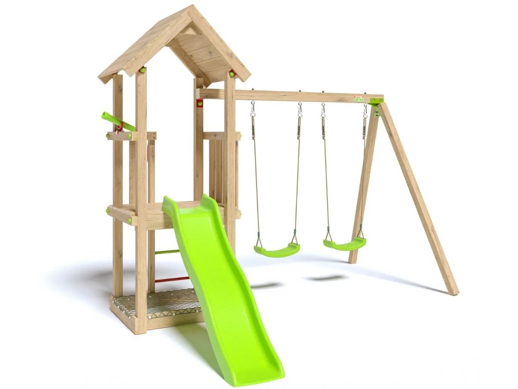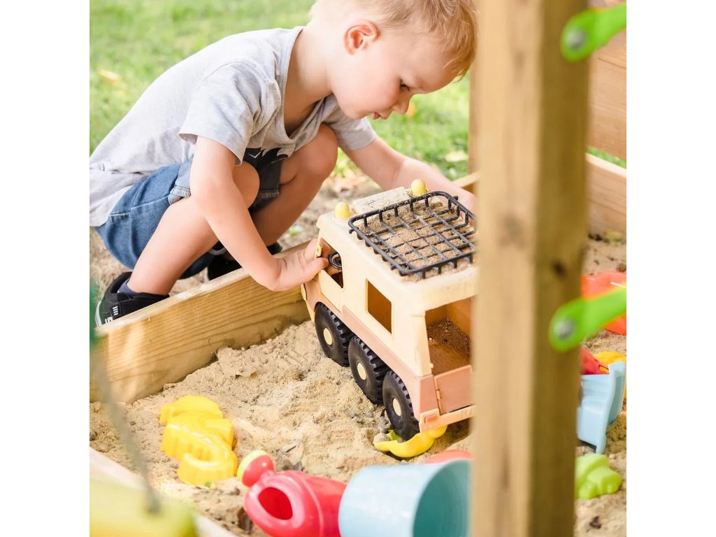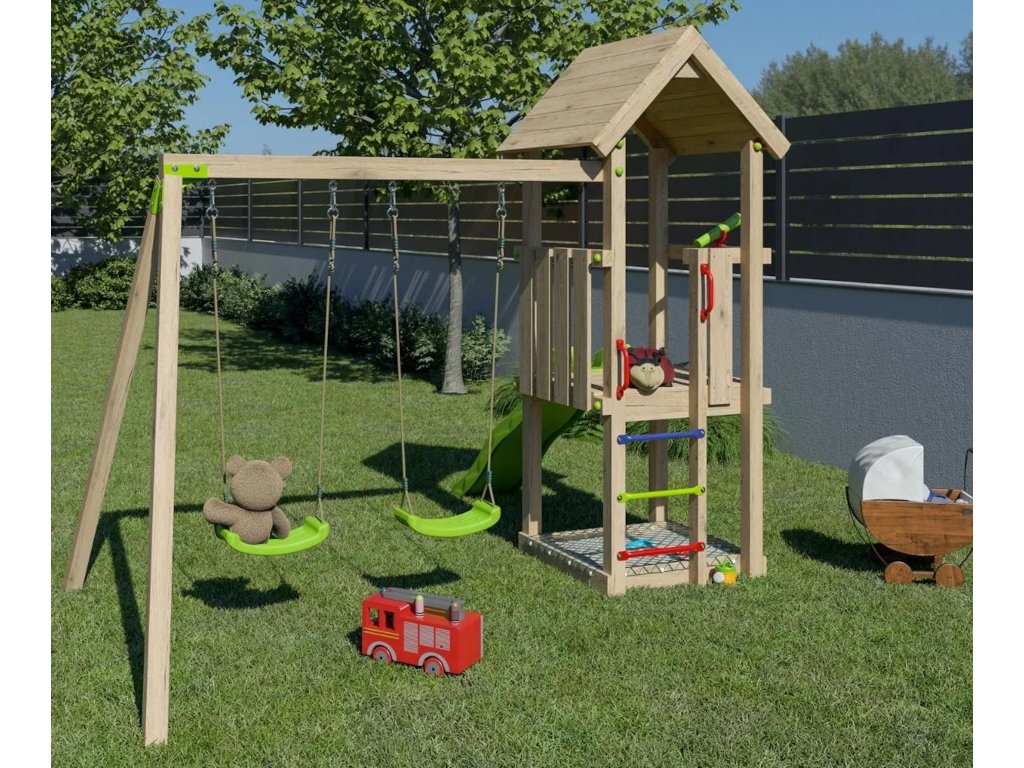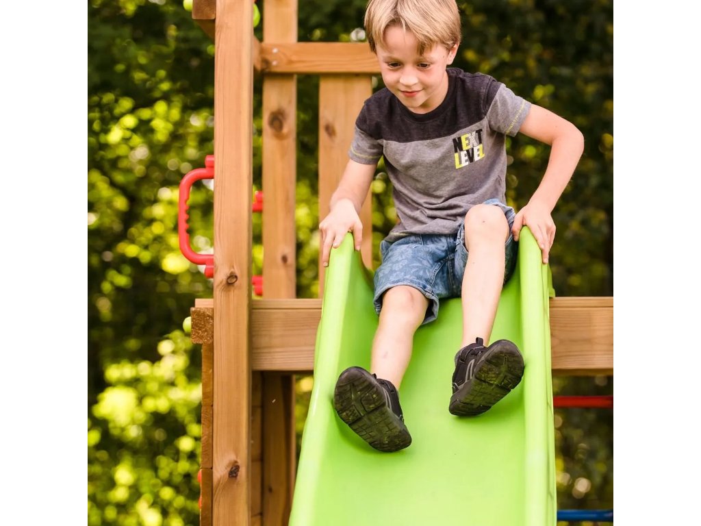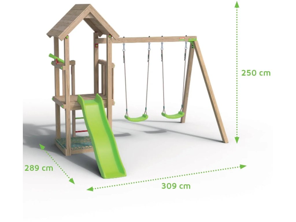 Vďaka svojim žiarivým farbám a rozmanitým a hravým aktivitám toto krásne drevené ihrisko premení vašu záhradu na skutočný raj na hranie! Veľmi dobre vybavené, Zmestí sa do nej až 6 malých záhradných dobrodruhov! Priestor v záhrade len pre nich na zábavu, smiech, hru a vymýšľanie príbehov. Zatiaľ čo tí starší sa budú v plnej rýchlosti šmýkať dolu šmykľavkou, najmenší sa zabavia na pieskovisku, vďaka ktorému prežijú príjemné chvíle strávené na piesku. Súčasťou je ochranná sieť, ktorá chráni piesok pred zvieratami, aby sa deti mohli bezpečne hrať.