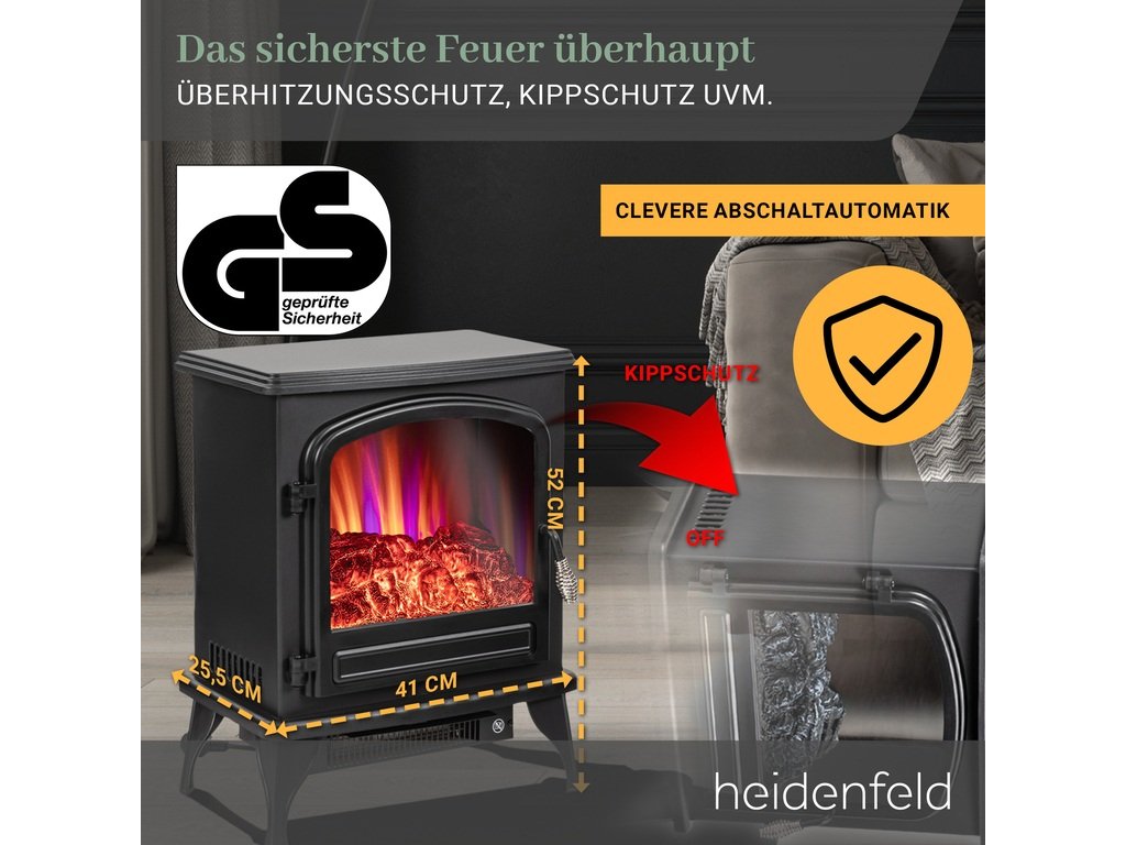 Samozrejme, pri elektrickom krbe nie je skutočný oheň. Bezpečnosť je však na prvom mieste! Na tento účel je v elektrickom krbe Heidenfeld EK100 zabudovaná ochrana proti prehriatiu. Navyše sa vďaka ochrane proti prevráteniu automaticky vypne, ak sa nakloní.