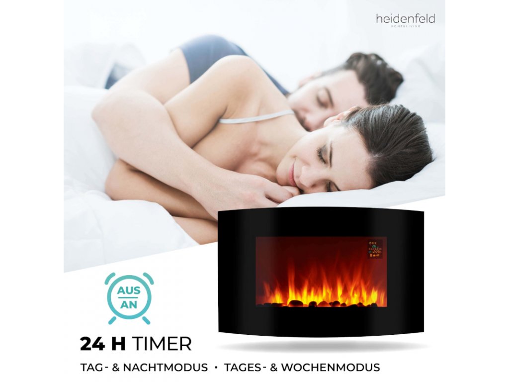 Elektrický krb Heidenfeld HF-WK100 je elektrický krb s funkciou programovania. S 24-hodinovým časovačom, denným a nočným režimom a denným a týždenným režimom máte množstvo možností, ako vopred nastaviť prevádzkové časy vykurovacieho elektrického krbu. Pomocou diaľkového ovládača jednoducho naprogramujte prevádzkové časy na deň alebo na celý týždeň. Niet pochýb: Tento elektrický krb vám ponúka plný komfort.