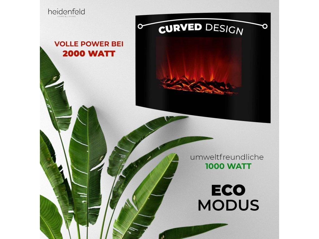 Elektrický krb Heidenfeld HF-WK100 vám neponúka len krásny elektrický krb. Ako účinný elektrický ohrievač s tepelným výkonom až 2000 wattov rýchlo vykúri aj príslušnú miestnosť. Ak potrebujete o niečo menší tepelný výkon, zvoľte obzvlášť energeticky účinný režim ECO. Elektrický krb môžete samozrejme použiť aj úplne bez funkcie vykurovania, ak si chcete len vychutnať upokojujúci pohľad na otvorený oheň.