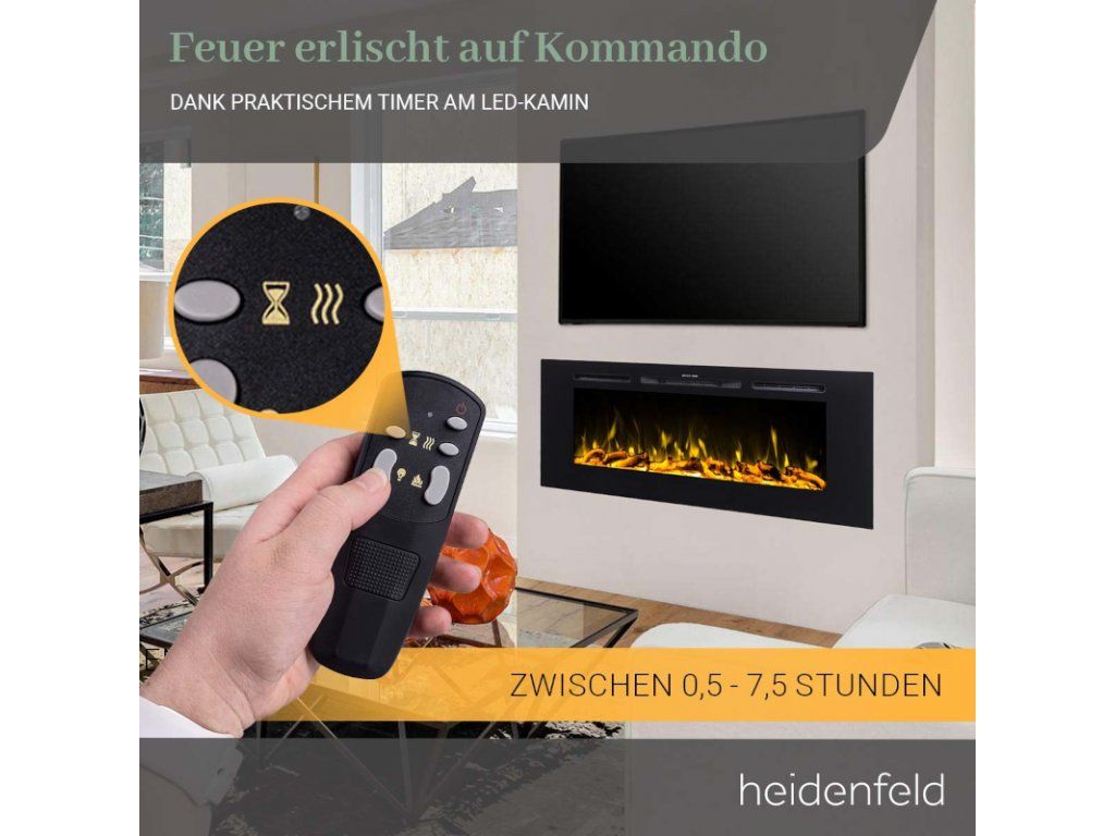 Urobte si pohodlie pred elektrickým krbom Heidenfeld HF-WK200 a vychutnajte si príjemné teplo na vašej pokožke: Pretože elektrický krb vyžaruje teplo priamo dopredu. Nepotrebujete funkciu vyhrievania? Žiadny problém: vypnite ich kliknutím a užite si pohľad na LED krb.