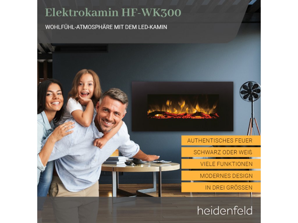 Takto si vytvoríte vždy dobrú atmosféru. Vyskúšajte si rozmanité možnosti nastavenia elektrického krbu Heidenfeld HF-WK300 sami pomocou praktického diaľkového ovládača alebo integrovaného ovládacieho prvku .