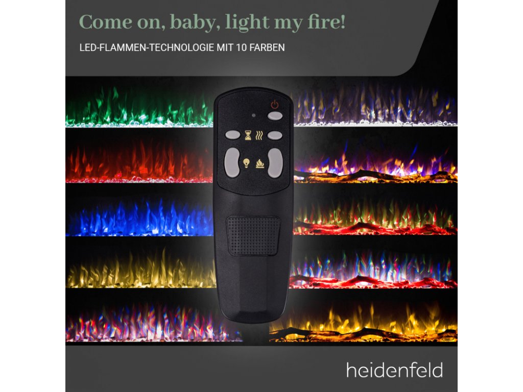 Blikajúci otvorený oheň bez prikladania dreva – technológia plameňa LED elektrického krbu Heidenfeld HF-WK300 to umožňuje! 3D efekt plameňa zaisťuje klamlivo skutočný vzhľad . Plamene obmieňajte individuálne podľa svojej chuti! Môžete si vybrať z 10 farieb a 5 úrovní jasu .