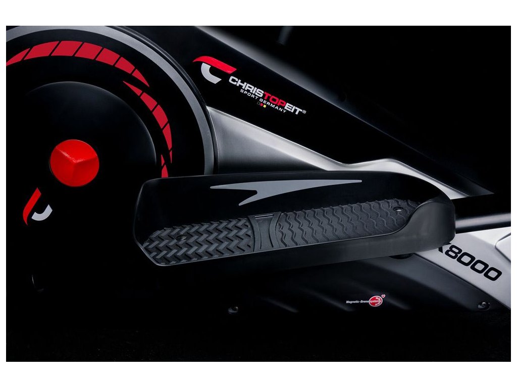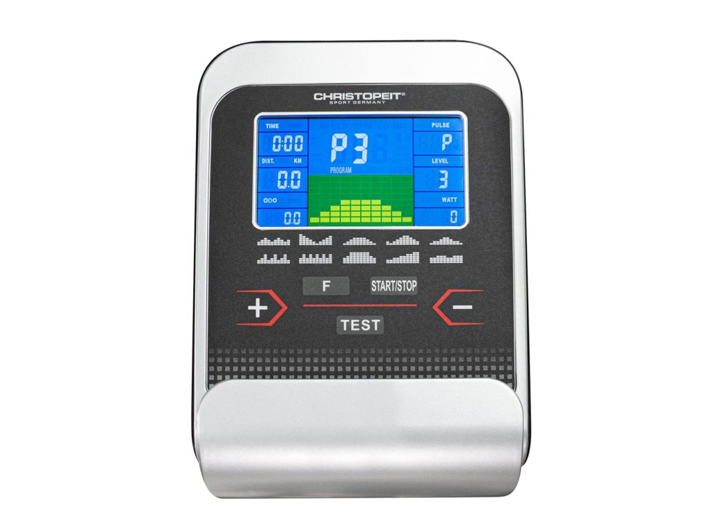 Precvičte takmer celé telo bez ohľadu na počasie a dennú dobu. Na crossovom trenažéri sa intenzívne precvičujú nielen zadok a nohy, efektívne sa zapájajú aj ruky, ramená a chrbát. Malá vzdialenosť nášľapnej plochy 20 cm a dĺžka kroku 30 cm zaisťujú prirodzený a jemný pohyb. Neopotrebovateľný magnetický brzdný systém, tichý remeňový pohon, nožné pedály s guľôčkovými ložiskami a hmotnosť zotrvačníka 8 kg zaručujú rovnomerný a hladký chod. Počítačom riadená magnetická brzda umožňuje jemné odstupňovanie sily šliapania v 24 úrovniach.
