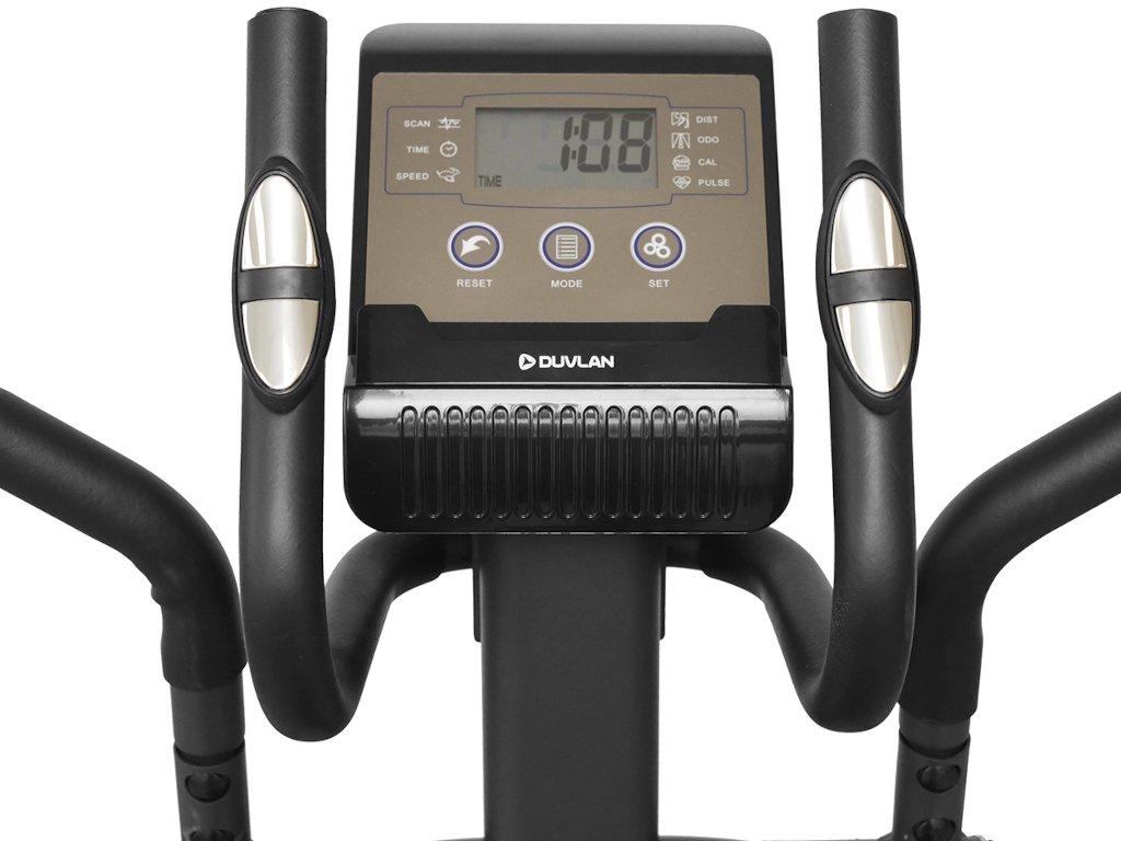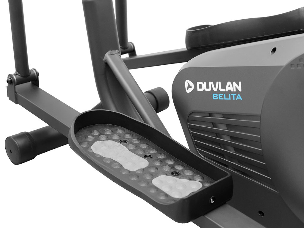 DUVLAN Belita s 5 kg záťažovým kolesom a 8 stupňami regulácie záťaže umožňuje plynulý a efektívny pohyb pri prechode jednotlivých stupňov záťaže. Eliptical má pohyblivé a pevné rukoväte so zabudovanými snímačmi tepovej frekvencie. Cvičenie na elipticali DUVLAN Belita je efektívne, bezpečné a časovo nenáročné.