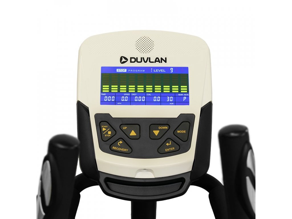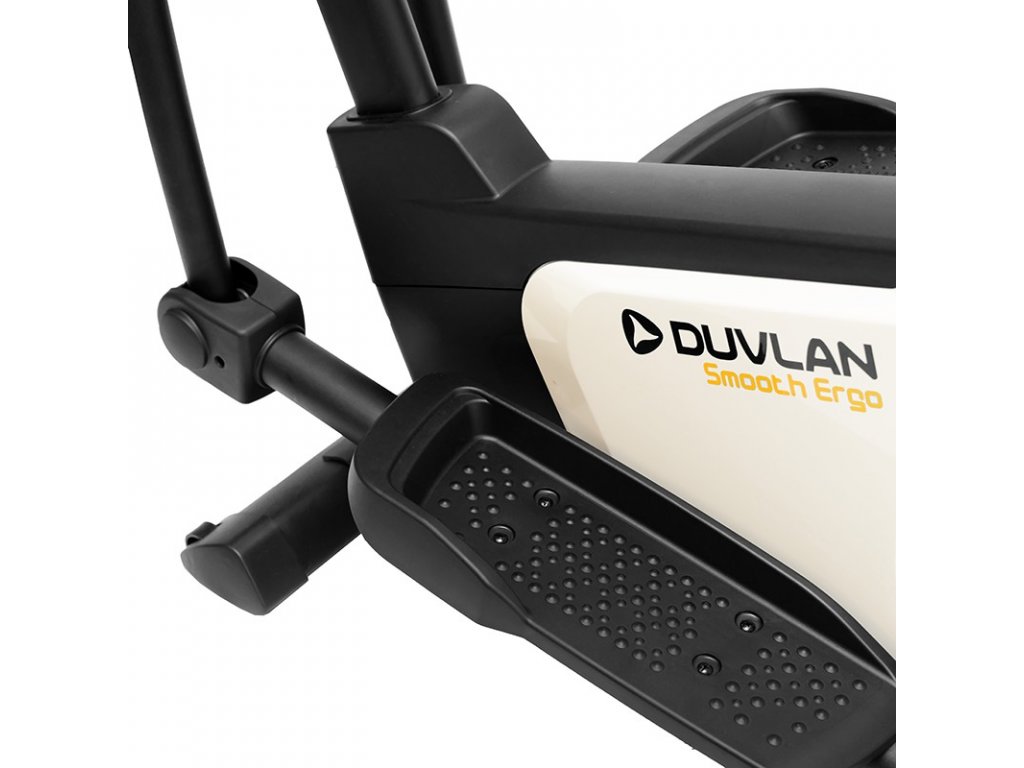 Eliptický trenažér Duvlan Smooth Ergo predstavuje vyšší štandard v oblasti domáceho fitness zariadenia. Jeho prednosťami sú predovšetkým záťažové koleso s hmotnosťou až 10 kg a dĺžka kroku 36 cm. K dispozícii máte okrem pohyblivých rukovätí taktiež aj stacionárne, ktoré disponujú snímačmi na meranie tepovej frekvencie. V bohatej ponuke prednastavených programov si môžete vybrať jeden z 12 prednastavených programov, 4 HRC programov, manuálneho režimu alebo si v neposlednej rade môžete zostaviť vlastný program. A nie jeden, ale dokonca až 4. Spoľahlivosť prístroja zabezpečujú kvalitné plasty a pevná kovová konštrukcia. Samozrejmosťou sú trojdieľne kľuky a priemyselné ložiská.