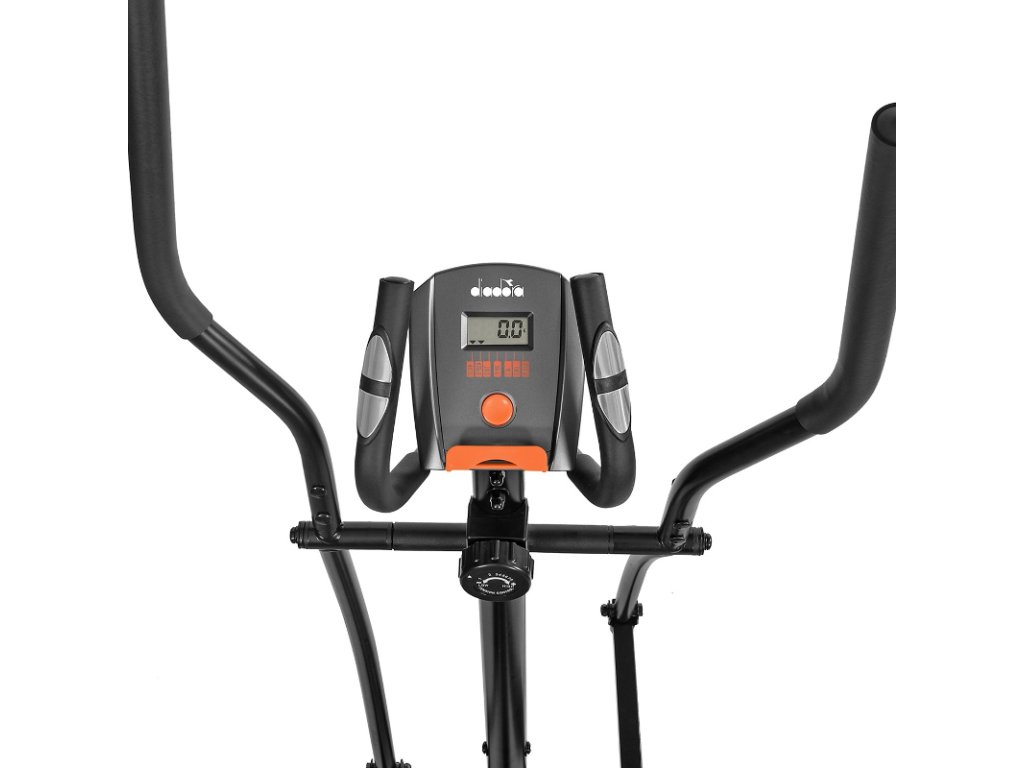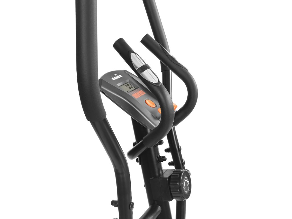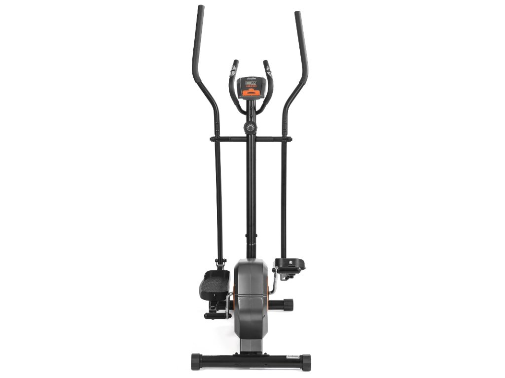 Konzola je vybavená držiakom tabletu a na LCD displeji sa zobrazujú funkcie času, vzdialenosti, kalórií, rýchlosti a srdcového rytmu zistené pomocou ručných snímačov impulzov z ruky. V neposlednom rade disponuje eliptical nosnosťou 110 kg alebo transportnými kolieskami, ktoré sú veľmi praktické ak chcete trenažér premiestniť.