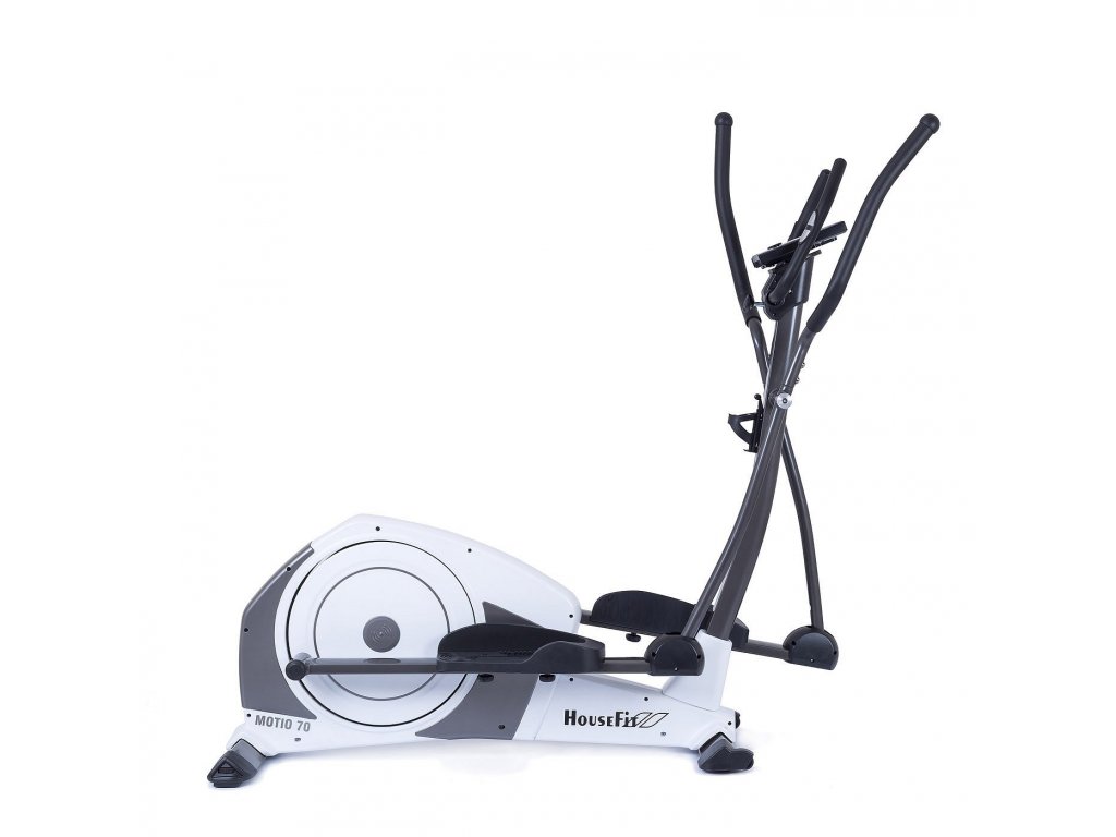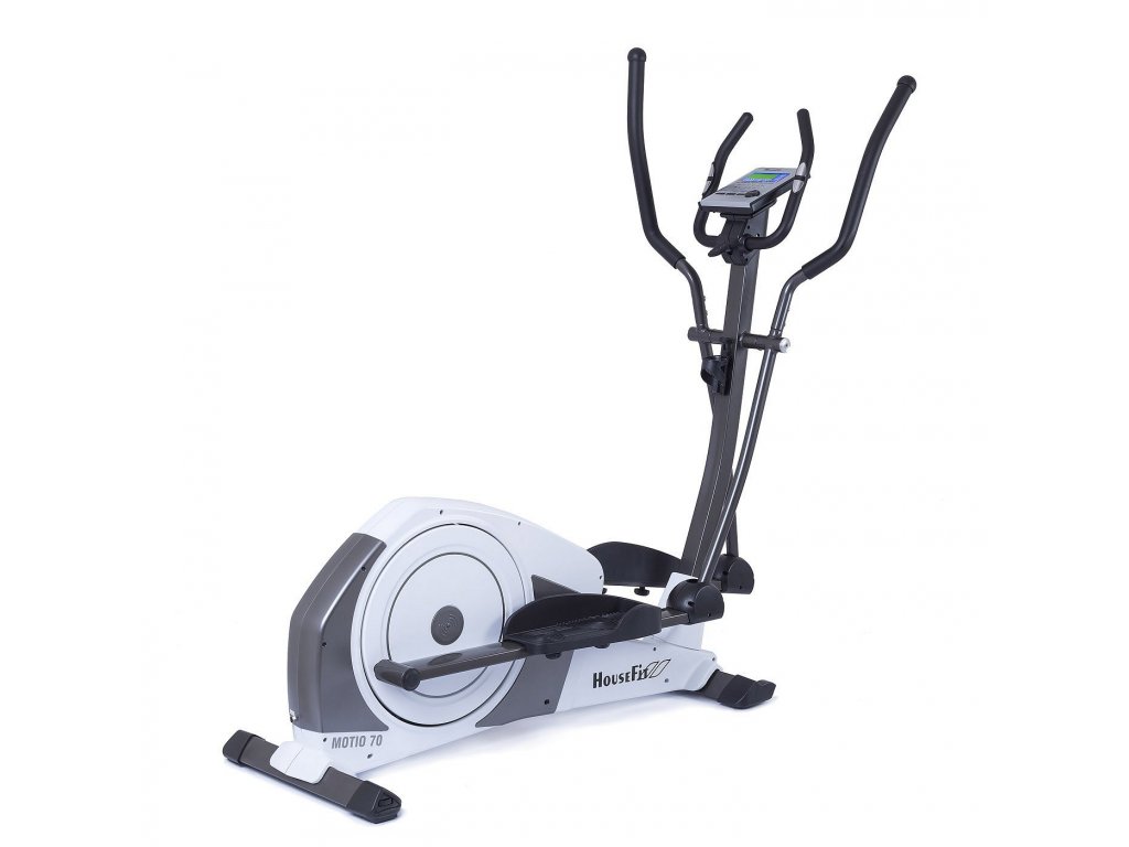 Trenažéry značky HOUSEFIT MOTIO 70 patria na slovenskom trhu k najpredávanejším v kategórii domácich eliptických trenažérov. Navyše je vybavený elektronickým ovládaním záťaže s možnosťou programovania v 16 stupňoch obtiažnosti záťaže. Kvalitný oceľový materiál rámu, zušľachtená odolná stredová oska, sú zárukou stabilnej konštrukcie a dlhej životnosti trenažéra. Vyvážený zotrvačník a rotujúca hmota 19 kg, spoločne s účinným servomotorom umožňujú bezproblémový a plynulý tréning osobám do hmotnosti 150 kg. Ďalšou prednosťou modelu MOTIO 70 značky HOUSEFIT sú rozmery trenažéra, ktoré umožňujú používanie osobám všetkých výškových kategórií až do 200 cm. Plusom tohto stroja je aj možnosť naklonenia pevných rukovätí. K pohodliu a správnej ergonómii cvičenia prispieva extrémne dlhý krok 40 cm a tiež vzdialenosť pedálov od seba, ktorá je 20 cm. Nehlučný chod a dlhú životnosť, zaisťuje stroju 16 priemyselných ložísk osadených v pohyblivých spojoch, stredovom zložení a na osi zotrvačníka. Kyvné priemyselné ložiská sú použité v mieste napojenia pedálov na zotrvačník. Tým je zaistená minimálna poruchovosť stroja. Prehľadný a ľahko ovládateľný computer je vybavený podsvieteným, farebným multifunkčným LCD monitorom. Má ľahké manuálne ovládanie záťaže, tlačidlami + a -, profilový tréning, kedy podľa zvolenej trate, ergometer sám mení záťaž priebehu jazdy a zobrazuje vašu polohu na trati. Ďalej má programy riadené tepovou frekvenciou v úrovni 55%, 75%, 90%. V závislosti na vloženej informácii o veku cvičenca, sa automaticky počas jazdy reguluje záťaž tak, aby sa udržovala tepová frekvencia vo vybranej zóne. Komfort a presnosť merania je zaistený komunikáciou s hrudným pásom (možno dokúpiť). Počítač je vybavený systémom RECOVERY, ktorý vie vyhodnotiť v tzv. upokojovacej fáze po cvičení váš fyzický stav, meraný v závislosti od rýchlosti poklesu tepovej frekvencie bezprostredne po dokončení tréningu.