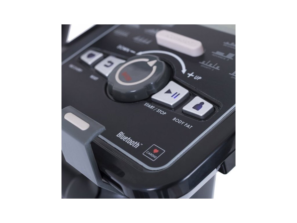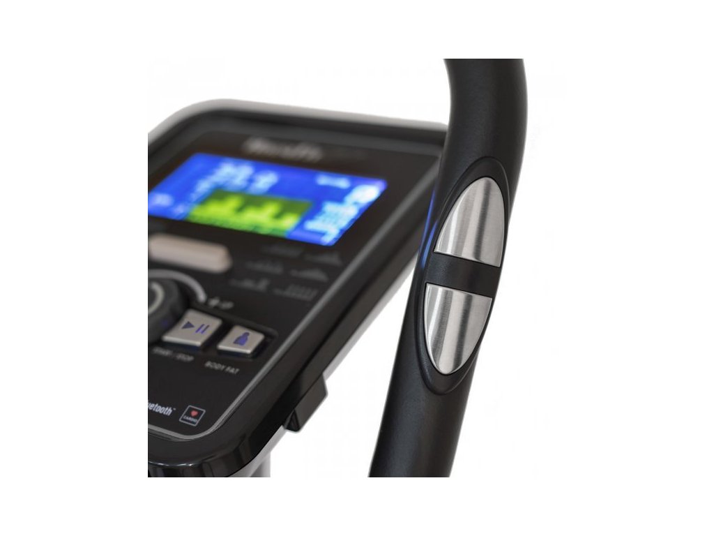 - meranie tepovej frekvencie senzormi na madlách, alebo bezdrôtovo hrudným pásom (pás je možné prípadne dokúpiť, nie je súčasťou stroja)
