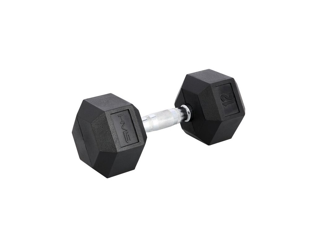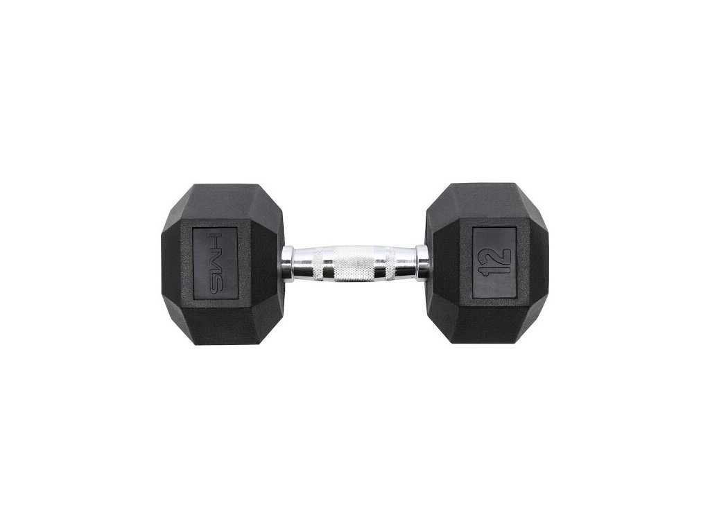 12 kilogramová jednoručná šesťhranná činka určená pre profesionálne použitie ako doma tak v posilňovni. Šesťhranný tvar zamedzuje nechcenému pohybu činky pri jej uložení a pogumovanie predlžuje jej životnosť. Chrómový úchop je opatrený rádlováním pre istejšie držanie.