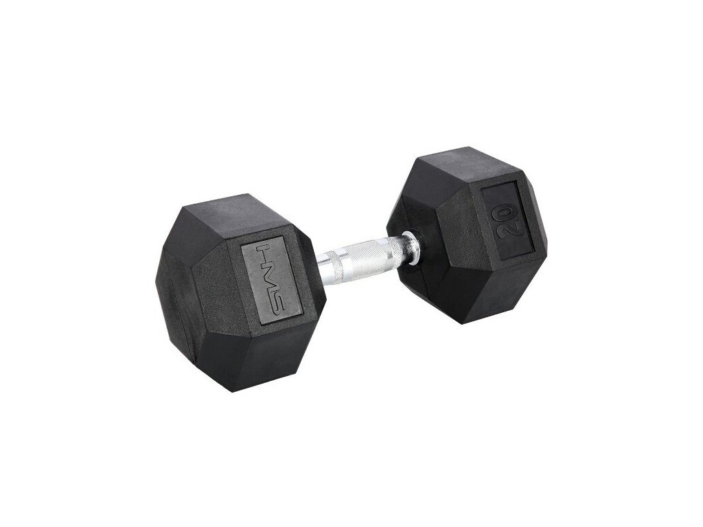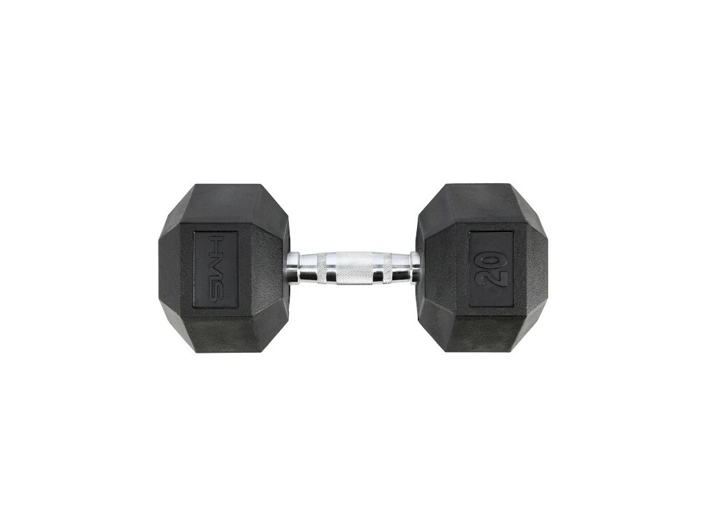 20 kilogramová jednoručná šesťhranná činka určená pre profesionálne použitie ako doma tak v posilňovni. Šesťhranný tvar zamedzuje nechcenému pohybu činky pri jej uložení a pogumovanie predlžuje jej životnosť. Chrómový úchop je opatrený rádlováním pre istejšie držanie.