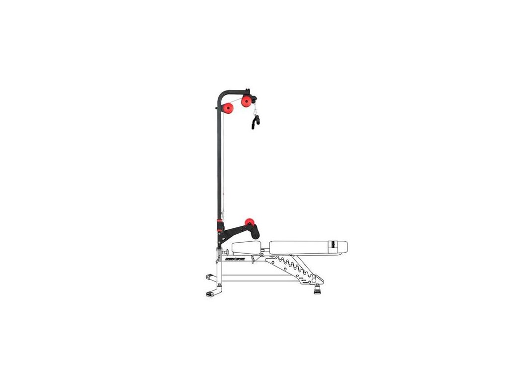 Kladka MARBO MS-W102 je príslušenstvo k laviciam: MS-L105, MS-L102, MS-L101 a MS-L114. Výšku kladky možno nastaviť v rozmedzí 215 - 230 cm. O stabilitu počas cvičenia sa postarajú dve opory z vysoko kvalitnej EVA peny s hrúbkou 8 cm. Plynulosť ťahu zaisťujú tri kladky s guličkovými ložiskami. Kvalita výrobku je zavŕšená exkluzívnym práškovým lakovaním konštrukcie.