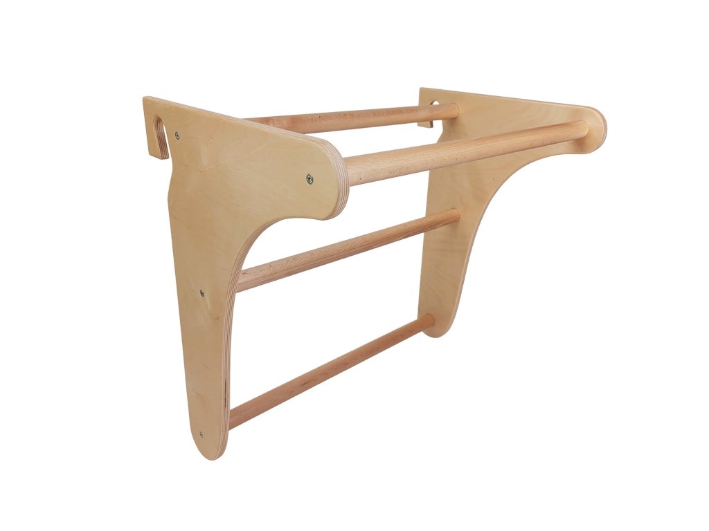 Hrazda na zhyby je vyrobená z kvalitnej tvrdej preglejky s hrúbkou 18 mm a bukových tyčí s priemerom 35 mm. Hrazdu je možné jednoducho zavesiť do ľubovoľnej výšky, čo umožňuje vykonávanie širokej škály cvikov. V kombinácii s rebrinami tvorí ideálnu zostavu na cvičenie aj rehabilitáciu.