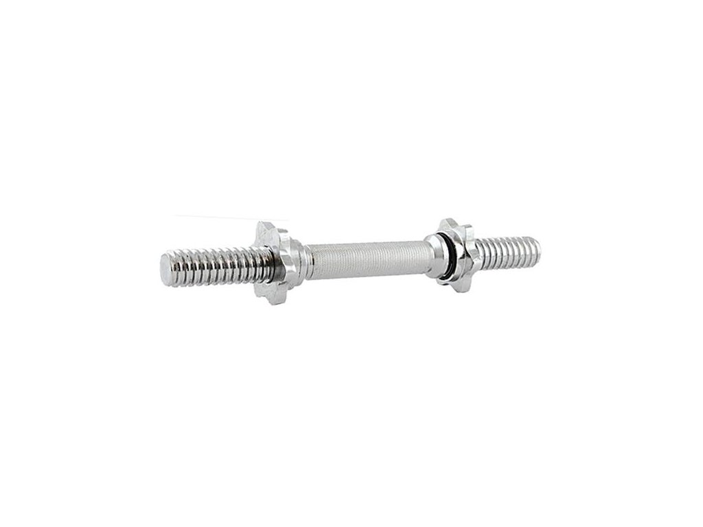 Jednoručná hriadeľ 35 cm s maticami v tvare hviezdy. Pre zaistenie pohodlného a bezpečného uchopenia je rukoväť hriadeľa vrúbkovaná. Sada obsahuje dve skrutkové matice. Matica tohto typu zaručuje pri cvičení stabilnú polohu. Matice majú vo vnútri gumové tesnenie, aby sa zabránilo uvoľneniu zaťaženia. Hriadeľ je vyrobená z pevnej ocele, ktorá bola podrobená temperovaniu. Priemer hrdla je 30 mm.