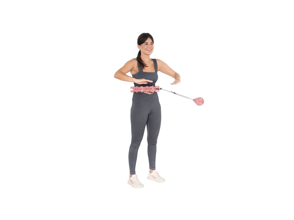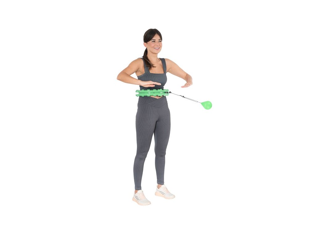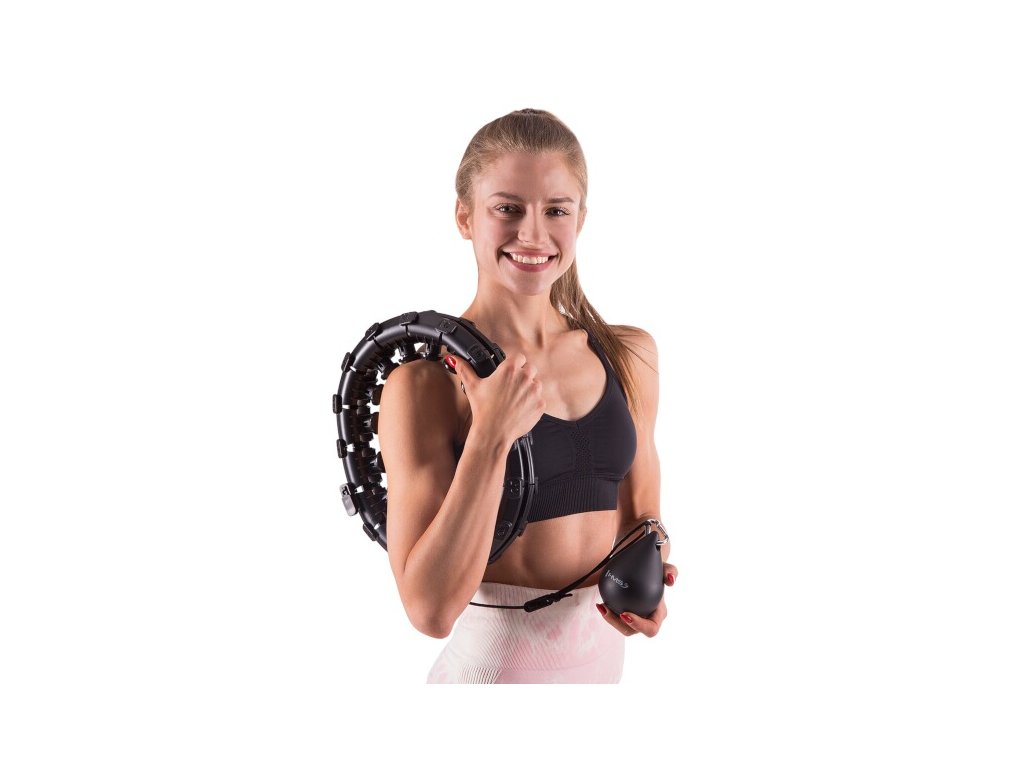 Dĺžka obruče sa nastavuje podľa obvodu pása tak, aby bola dostatočne voľná, ale zároveň neprepadávala cez boky. Po nastavení dĺžky sa obruč uzamkne pomocou spojovacieho dielu, ktorý je vybavený páčkami na ovládanie zámku. Potom závažie "hodíme" smerom, ktorým budeme krútiť bokmi, a začneme s tréningom. Obruč HHW01 je z vnútornej strany vybavená masážnymi klobúčikmi s pružinami, ktoré tlmia vibrácie z pohybujúcej sa kotvy a zároveň príjemne masírujú oblasť pása. Intenzitu cvičenia ovplyvňuje dĺžka šnúry a rýchlosť, akou krútime bokmi.