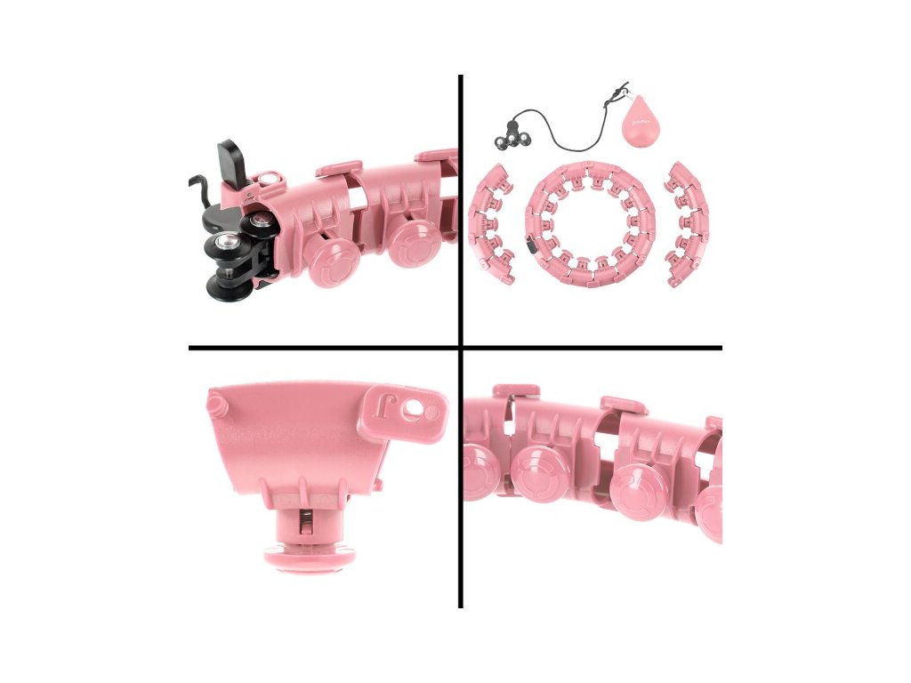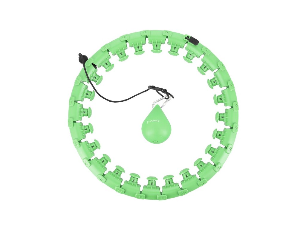 Funkcia obruče HMS HHW01 je veľmi jednoduchá. Konštrukcia pozostáva z 24 rovnakých častí, ktoré sa skladajú do seba. Aby ste obruč uzavreli, musíte použiť aspoň 14 kusov, ktoré potom vytvoria kruh s vnútorným priemerom 15 cm, ak spojíte všetkých 24 kusov, potom bude vnútorný priemer 34 cm. Model HHW01 je vhodný pre obvod pása od 46 do 105 cm. Jednotlivé diely tvoria koľajnicu, do ktorej sa pred zatvorením vloží kotva, ktorá je vybavená šiestimi kolieskami s guľôčkovými ložiskami. Ku kotve je pomocou dĺžkovo nastaviteľného povrázka pripevnené závažie s hmotnosťou 400 gramov. Šnúru možno nastaviť na dĺžku 22 až 38 cm a zmenou dĺžky šnúry sa upravuje výsledná odstredivá sila závažia - čím dlhšia je šnúra, tým "ťažšie" bude závažie.