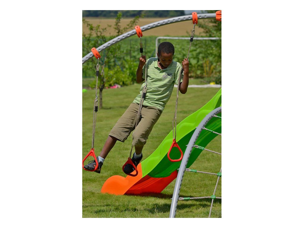K ihriskám Trigano EVO vám ponúkame možnosť dokúpiť si jednotlivé časti hier. Vaše deti si tak môžu užiť viac radosti z hrania a pritom sa učiť nové veci. Odvážlivci si môžu vyskúšať na Infernal rings prekonanie strmeňov až k veži ihriska. Čas na tejto prekážkovej dráhe je výzvou pre všetkých malých dobrodruhov! Výborne si tu trénujú okrem sily aj trpezlivosť dostať sa do vytúženého cieľa. Odporúčaný vek pre deti od 4-12 rokov.