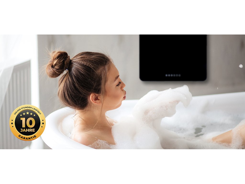 Infračervený ohrievač s dvoma úrovňami ohrevu (425 a 800 wattov) zohreje vaše uteráky a rýchlo a energeticky vykúri aj kúpeľne do 20 metrov štvorcových. Jednoducho zaveste infračervený kúpeľňový žiarič na stenu a užívajte si príjemné infračervené teplo. Ohrievač uterákov so životnosťou viac ako 100 000 hodín a desaťročnou zárukou je dobre chránený proti striekajúcej vode a prehriatiu a má aj detskú poistku. Jednoducho sa ovláda cez displej alebo v inteligentnom domácom mobile cez aplikáciu. Vaša kúpeľňa už po príchode domov príjemne teplá.
