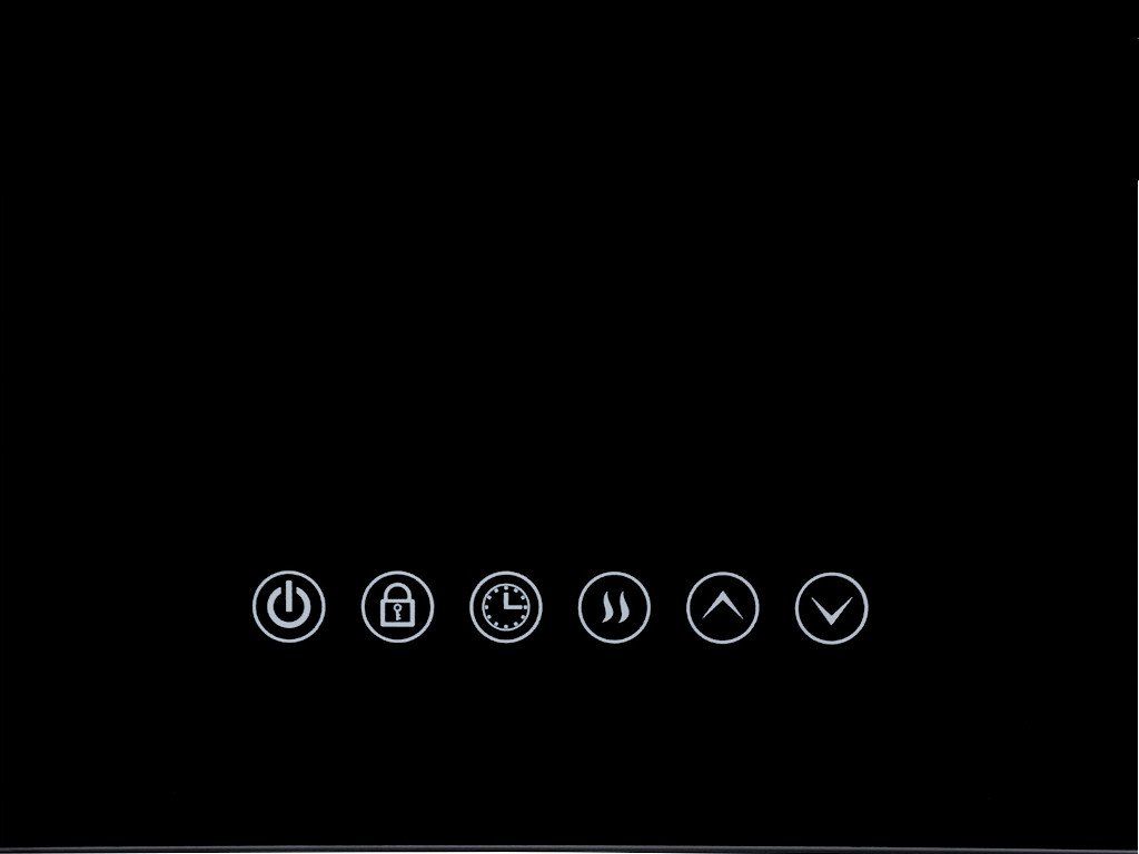 - displej: On/Off, detská poistka, funkcia času, úroveň ohrevu, teplota, čas