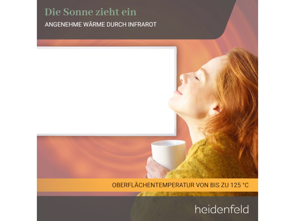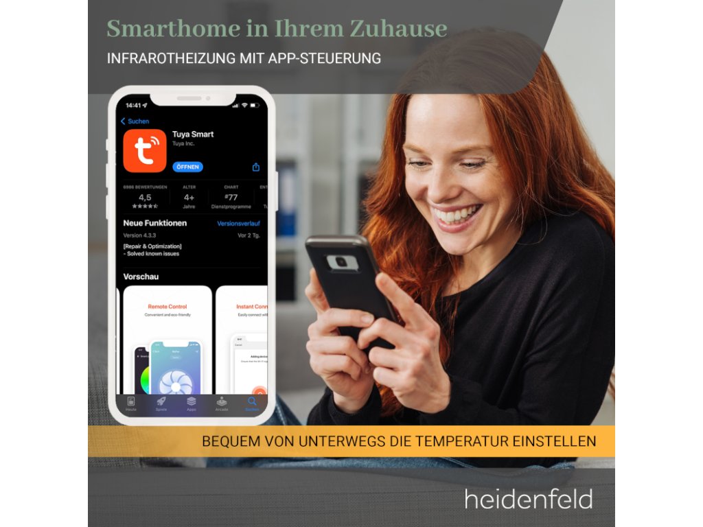 Technológia nám uľahčuje život v mnohých rôznych oblastiach. Prečo nie aj pri kúrení? Infračervený ohrievač Heidenfeld HF-HP100-2 možno pohodlne ovládať cez aplikáciu. Vytvorte si individuálne programy alebo zmeňte izbové teploty v celom dome. Inteligentná detekcia otvoreného okna zabraňuje zbytočnej spotrebe energie. A čo je na tom najlepšie: toto všetko zvládnete z pohodlia vlastného sedadla! Vďaka infračervenému žiareniu získate mimoriadne príjemné teplo. Lúče totiž ohrievajú predmety v miestnosti podobne ako slnko. Dlhú životnosť zaručuje 10-ročná záruka tohto vykurovacieho systému. Tento infračervený ohrievač je k dispozícii so siedmimi príkonmi - s týmto výberom nájdete ten správny model pre každú vašu izbu. Infražiarič zapadne do vášho interiéru jednoduchým a harmonickým spôsobom. Vydajte sa na cestu k inteligentnej budúcnosti už teraz.