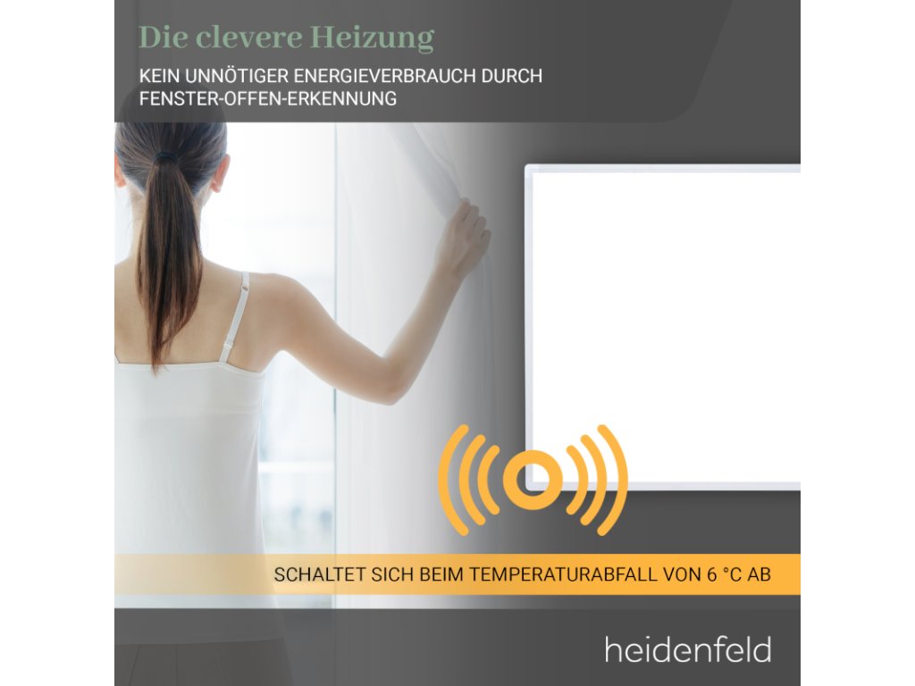 Samozrejme, že chcete vykurovať len vtedy, keď je to naozaj nevyhnutné. Aktivácia detekcie otvoreného okna preto chráni pred plytvaním spotrebou energie. Ak teplota klesne o 6 °C do 20 minút, infražiarič sa sám vypne. Stlačením tlačidla sa infražiarič Heidenfeld HF-HP100-2 opäť spustí v predtým nastavenom programe. Takto funguje bezstarostné kúrenie!