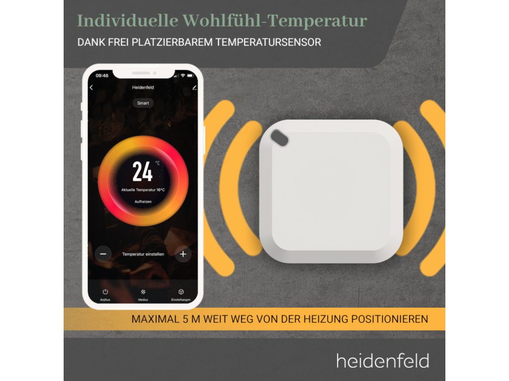 Infračervené vykurovanie s aplikáciou veľmi uľahčuje ovládanie. Funguje to pomocou teplotného senzora . Umiestnite ho do miestnosti vo vzdialenosti maximálne 5 m od infražiariča. Na svojom smartfóne vždy vidíte aktuálnu teplotu. Pomocou týždenných a denných programov máte vo svojom dome vždy svoju individuálnu teplotu!