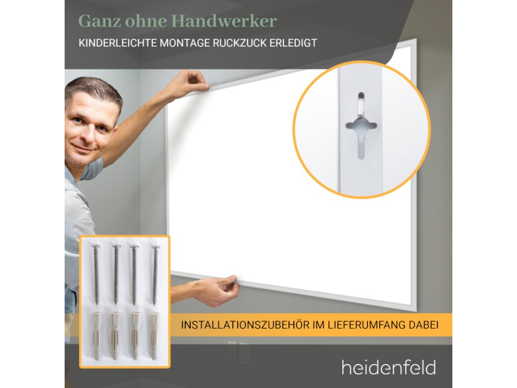 Infračervený ohrievač Heidenfeld HF-HP100-2 sa pripevňuje iba na stenu . Všetok potrebný montážny materiál je súčasťou dodávky. A v krátkom čase budete mať úžitok z inovatívneho vykurovacieho systému.