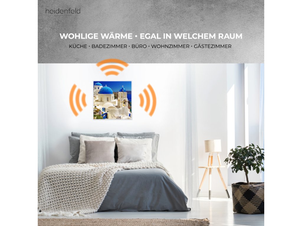 Infražiarič Heidenfeld môžete zavesiť prakticky na akúkoľvek stenu v miestnosti, pokiaľ dodržíte potrebné minimálne vzdialenosti.