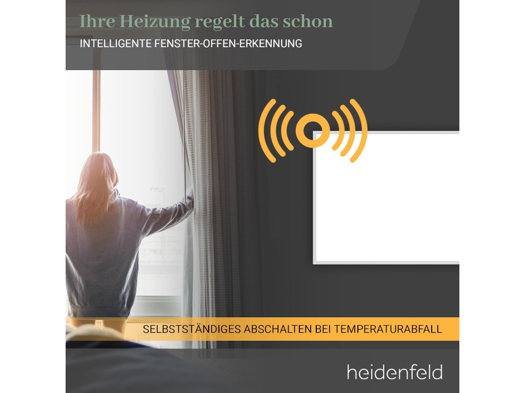 Infražiarič s ovládaním pomocou aplikácie ponúka viac než len príjemný komfort. Okrem odkazu na aplikáciu boduje aj inteligentnou detekciou otvoreného okna. Ak teplota v miestnosti klesne, infražiarič Heidenfeld HF-HP110 to rozpozná a automaticky sa vypne.