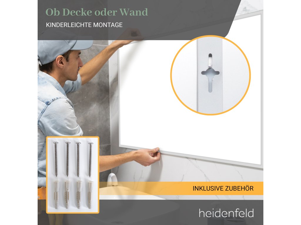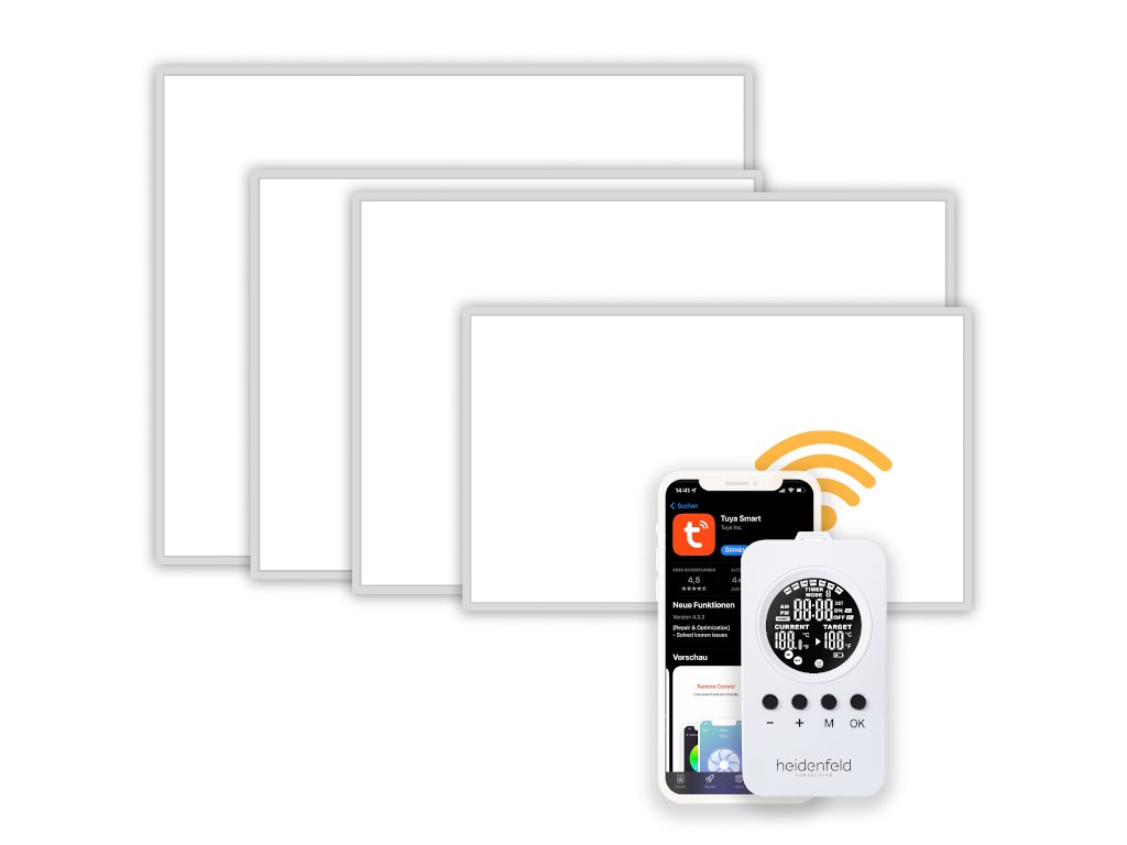 Vizuálne atraktívny stropný a nástenný ohrievač je dostupný v rôznych variantoch . Získate tak ten správny model pre každú veľkosť miestnosti. Tesnenia TÜV Süd a GS osvedčujú vysoký bezpečnostný štandard infračerveného vykurovania. Tešte sa na špeciálnu úroveň tepelného komfortu so životnosťou viac ako 100 000 hodín. Vďaka detekcii otvoreného okna sa infražiarič dokáže v prípade potreby aj sám vypnúť. Navyše ho možno pohodlne ovládať z mobilného telefónu pomocou aplikácie Tuya Smart . Alebo ho môžete ovládať pomocou diaľkového ovládania s termostatom. Infražiarič Heidenfeld je technicky brilantný, má moderný dizajn a presvedčí praktickou obsluhou.