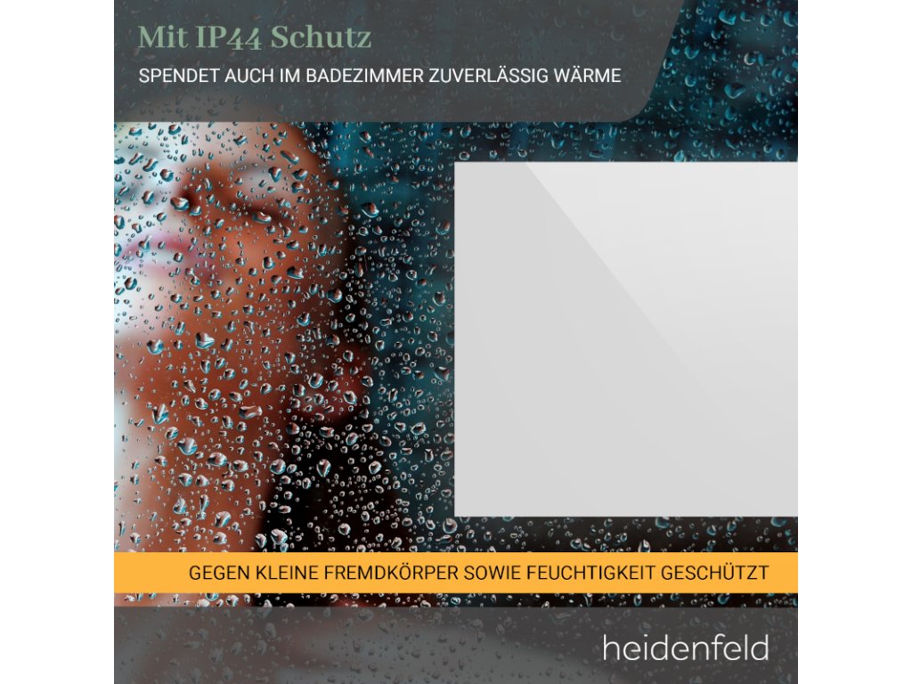 Naše infračervené vykurovanie pre kúpeľne a byty bolo dôkladne testované TÜV Rheinland a zistilo sa, že je bezpečné. Vykurovanie si tak môžete kedykoľvek zapnúť s dobrým pocitom. Spoľahlivý termostat vám tiež dáva plnú kontrolu nad prevádzkou – vo dne aj v noci. Bezpečnosť na prvom mieste: S naším infračerveným ohrievačom Heidenfeld ste vždy na bezpečnej strane.