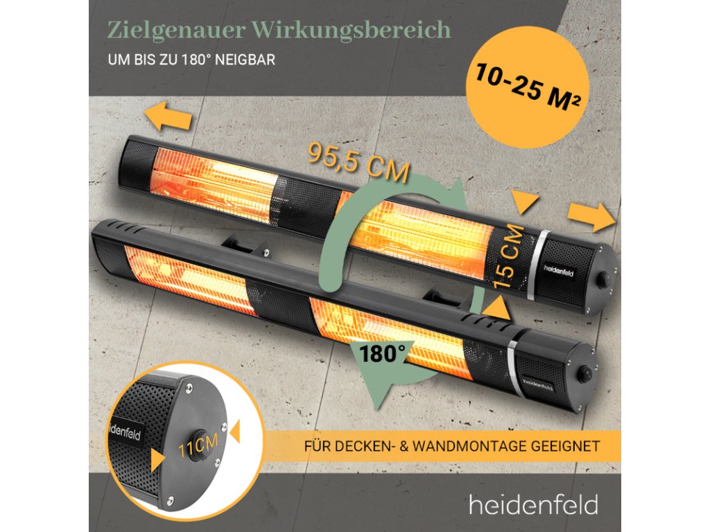 Ďalšie plus: je bez zápachu . Infračervený ohrievač Heidenfeld IH110 2.0 je tiež mimoriadne energeticky úsporný, pretože nie je potrebné dlhé predhrievanie.