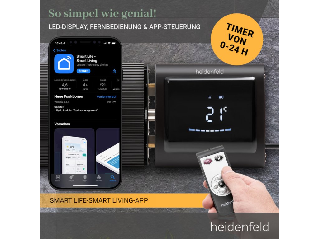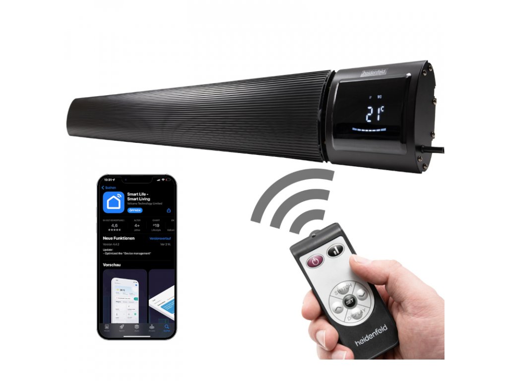 Aby ste mohli profitovať z prvotriedneho komfortu, infražiarič Heidenfeld Inferno DH700 nie je možné ovládať iba pomocou diaľkového ovládača. Je tiež kompatibilný s aplikáciou Smart Life Smart Living . Dá sa ovládať aj z mobilného telefónu.
