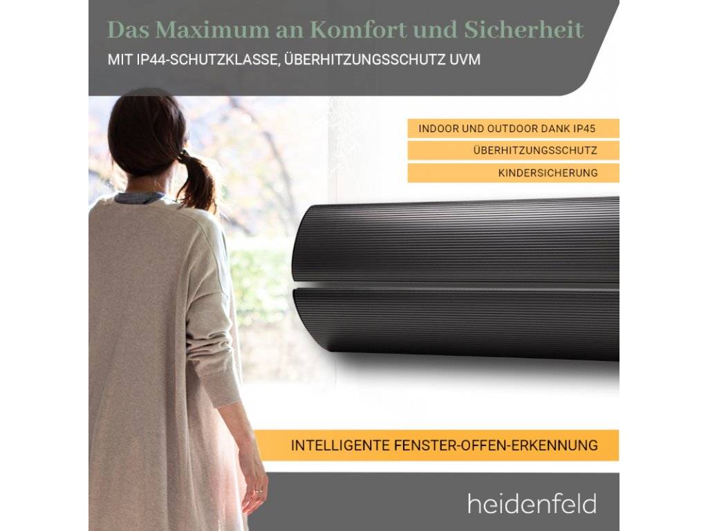 Ak používate tmavý ohrievač v uzavretých miestnostiach, má ďalšiu inteligentnú funkciu: detekciu otvoreného okna. Ak teplota klesne, sálavé kúrenie to rozpozná a automaticky sa vypne.