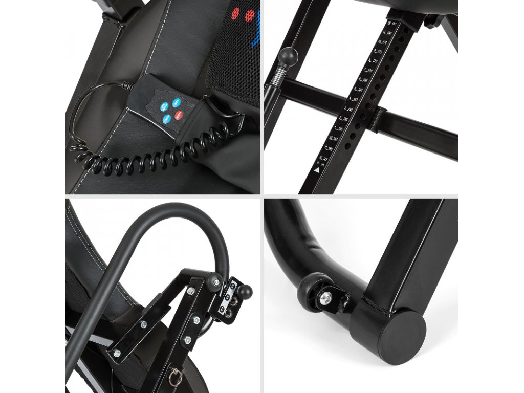 Vibračno výhrevný pás: S integrovaným pásom, ktorý poskytuje teplo a vibrácie, zažijete vynikajúcu úľavu od svalového napätia a zlepšenie krvného obehu. S nastaviteľnou intenzitou tepla a vibrácií si môžete prispôsobiť terapiu podľa svojich preferencií pomocou ovládača.