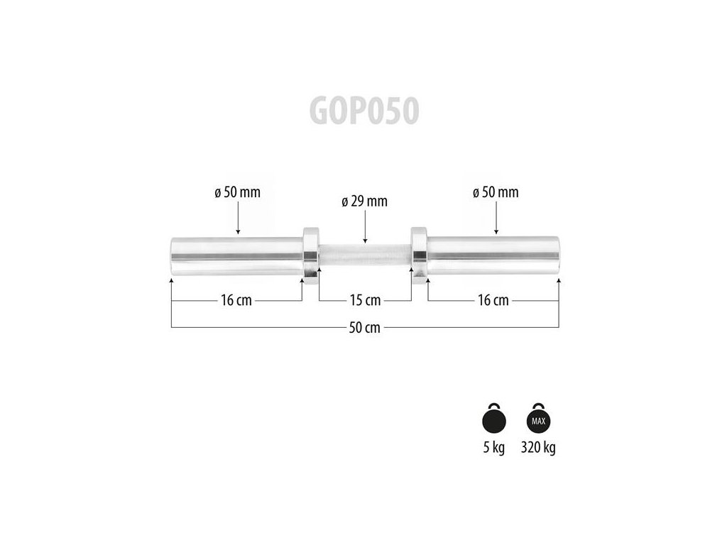 Os GOP050 je vyrobená z prvotriednej ocele, ktorá zaručuje jej dlhú životnosť a odolnosť aj pri najnáročnejších cvičeniach. Chrómovaný povrch pridáva eleganciu a účinne chráni proti korózii, čím predlžuje životnosť výrobku.