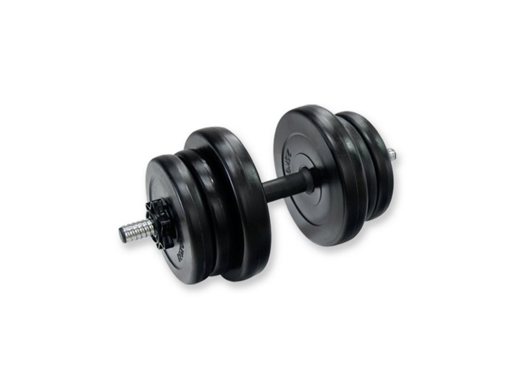 Jednoručný cementový set DUVLAN pozostáva z jednej nakladacej jednoručky s celkovou hmotnosťou 10 kg. Je určený na precvičenie hornej polovice tela v domácom prostredí. Hriadeľ činky s plastovou rukoväťou je vyrobený z kvalitnej ocele. Vďaka závažiam, ktoré sú vyrobené z plastu plneného cementovou náplňou je cenovo dostupný. Jednoducho a veľmi rýchlo si upravíte hmotnosť činky.
