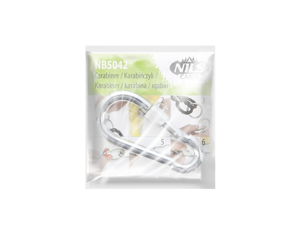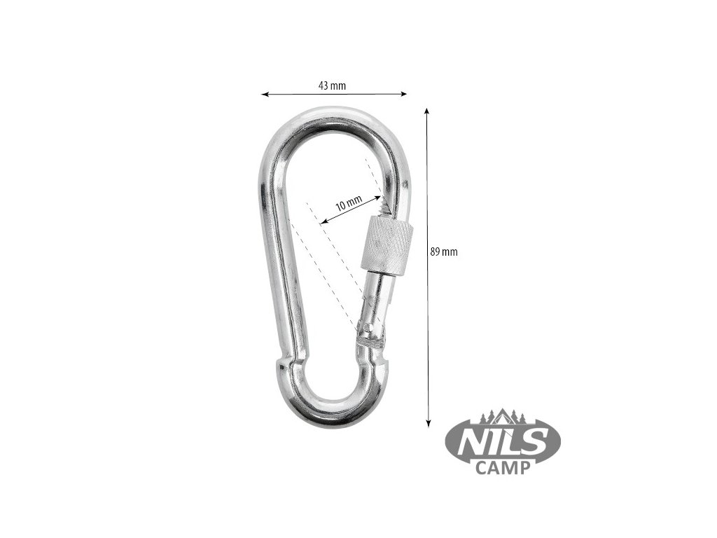 Oceľová karabína NILS Camp NB5042 s skrutkovacou poistkou váži iba 9 gramov, pri zablokovanej poistke má ale nosnosť až 500 kilogramov.