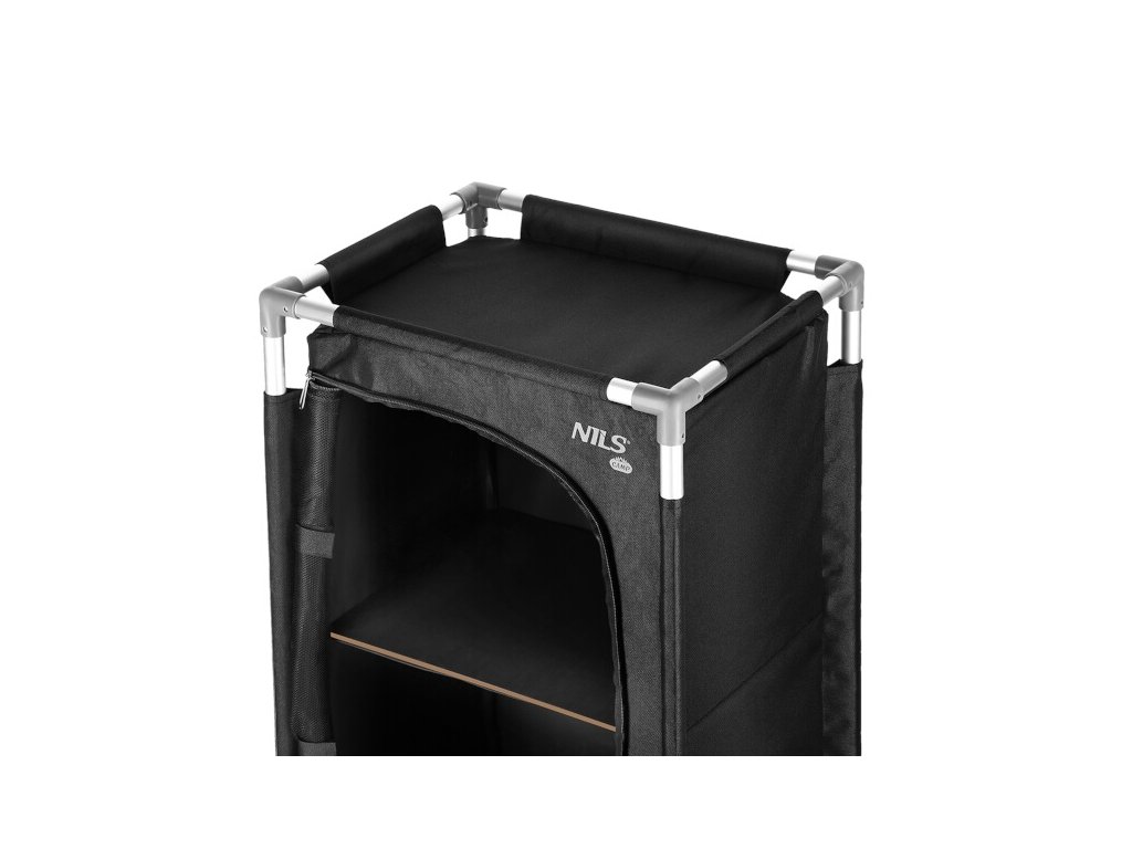 Samotná skrinka je vyrobená z polyesteru v povrchovej úprave oxford 600D. Táto tkanina je mimoriadne odolná voči poškodeniu a poveternostným podmienkam, ako je dážď a sneh. Látka sa navlieka na rúrky, ktoré sa potom spoja a skrinka sa v spodnej časti uzavrie pomocou suchých zipsov. Do skrinky sa potom umiestnia 2 police z MDF a práca je hotová. Predný panel je vyrobený zo sieťoviny na cirkuláciu vzduchu, dá sa zrolovať až po okraj a zaistiť popruhmi alebo uzavrieť dvojitým zipsom. NC3031 má rozmery 43 x 67 x 34 cm. Po rozložení sa dá zbaliť do dodaného prepravného obalu s držadlom. Kempingovú skrinku je najlepšie používať počas kempovania. Vďaka 2 policiam bude vaše oblečenie prehľadne uložené a suché.