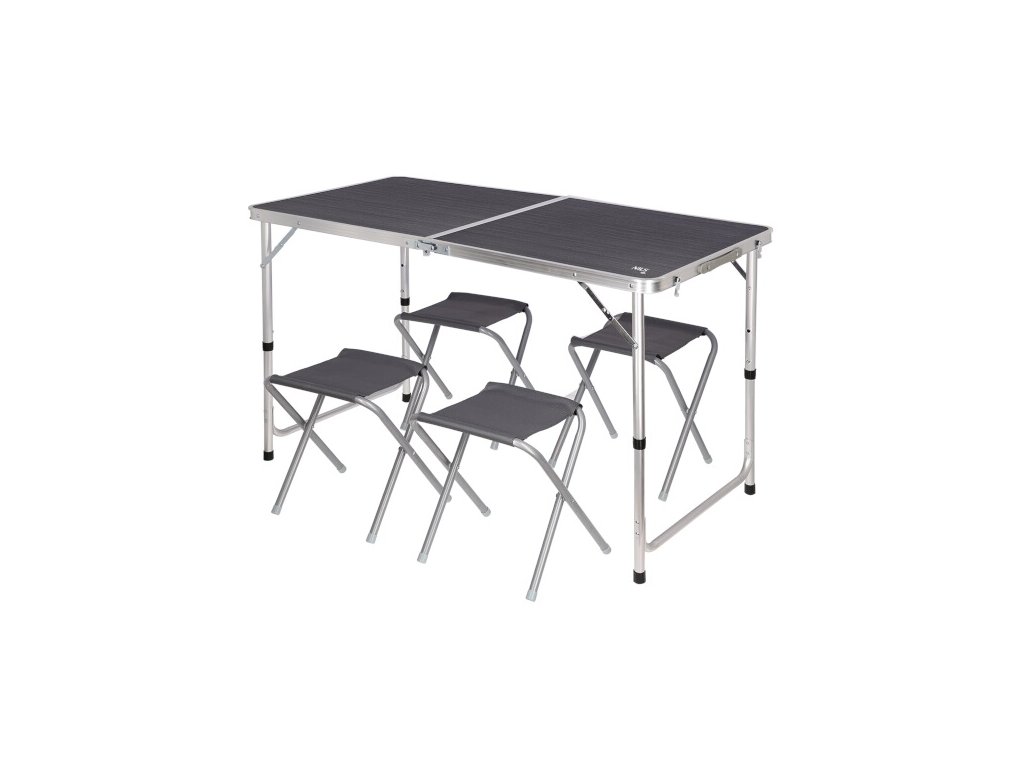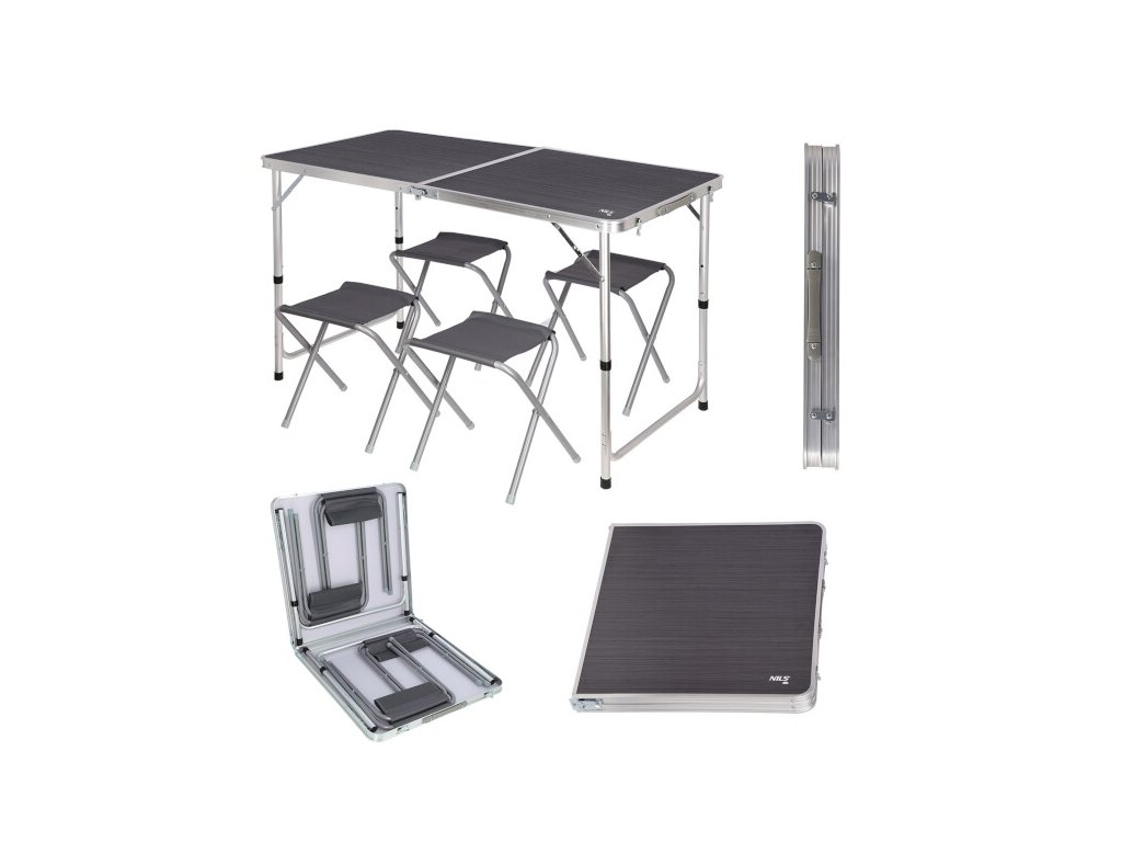 Štyri skladacie stoličky majú hliníkový rám. Látka použitá na sedacej časti je veľmi pevný polyester. Rozložená stolička má výšku 35 cm a plocha na sedenie má rozmery 27 x 25 cm. Po zložení sa stoličky dajú uložiť do priestoru vo vnútri zloženého stola. Toto riešenie šetrí miesto, takže súpravu NC1633 môžete vziať všade so sebou.