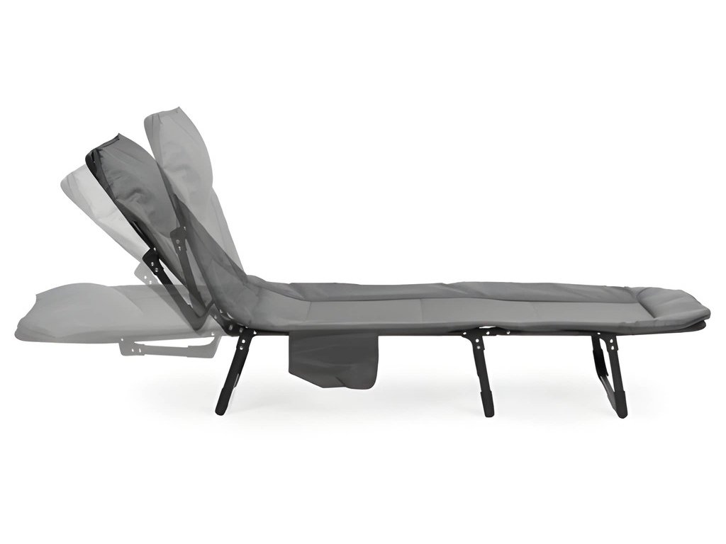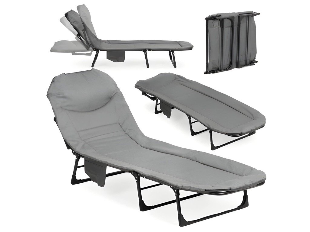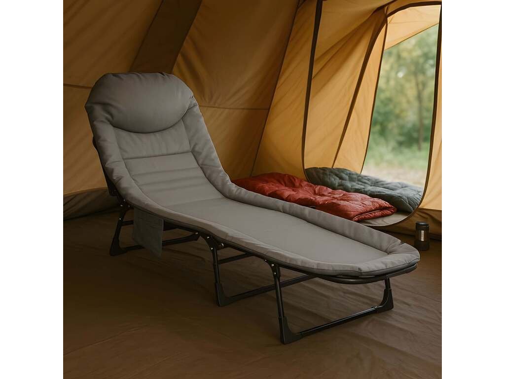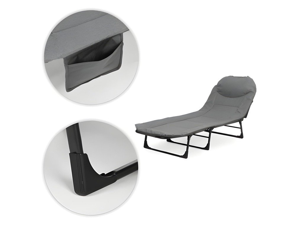 Kempingové ležadlo MultiGarden je ideálne na kempovanie, rybolov, karavany alebo do záhrady. Jeho ľahký a skladací dizajn uľahčuje prepravu a skladovanie. Oceľový rám s práškovou farbou zaisťuje odolnosť a protišmykové opierky na nohy zaisťujú stabilitu. Poťah z oxfordskej tkaniny 600D je vodeodolný a ľahko sa čistí. Mäkká opierka hlavy a bočné vrecko na drobnosti zvyšujú pohodlie. Päť nastavení opierky hlavy vám umožňuje prispôsobiť si polohu podľa vašich potrieb. Maximálna nosnosť je 120 kg.
