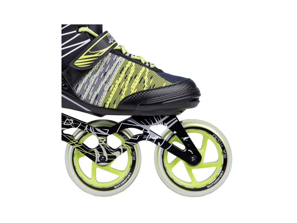110 mm PU kolieska sú osadené ložiskami ABEC 9 a oproti bežným korčuliam nemajú brzdu, preto je model NA 1206 vhodný pre pokročilých korčuliarov. Kolieska sú uložené v hliníkovom noži. Polomäkká topánka je vybavená systémom ventilácie. Vložka je profilovaná a priedušná. Zapínanie je riešené klasickou trojkombináciou (dvojsekčná pracka, opasok so suchým zipsom a šnurovanie).