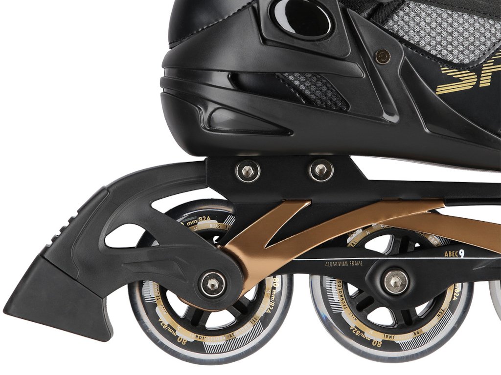 80 milimetrové kolieska s tvrdosťou 82A sú uložené v hliníkovej lište vyrobenej precízne CNC technológiou, dobre priliehajú k podkladu a čiastočne pohlcujú nervnosti. Model NA2150 je osadený ložiskami ABEC 9 CHROME, ktoré sa vyznačujú nízkym odporom, kedy jazda má dobrú zotrvačnosť a na korčuliach tak možno dosiahnuť vysokej rýchlosti, alebo uraziť dlhšiu vzdialenosť bez vynaloženia zbytočnej sily.