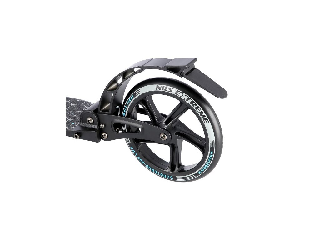 Kolobežka NILS Extreme HM200 je vhodná pre deti aj dospelých. Charakteristikou modelu HM200 sú tlmiče na prednom i zadnom kolese, široké riadidlá a výklopný stojan.